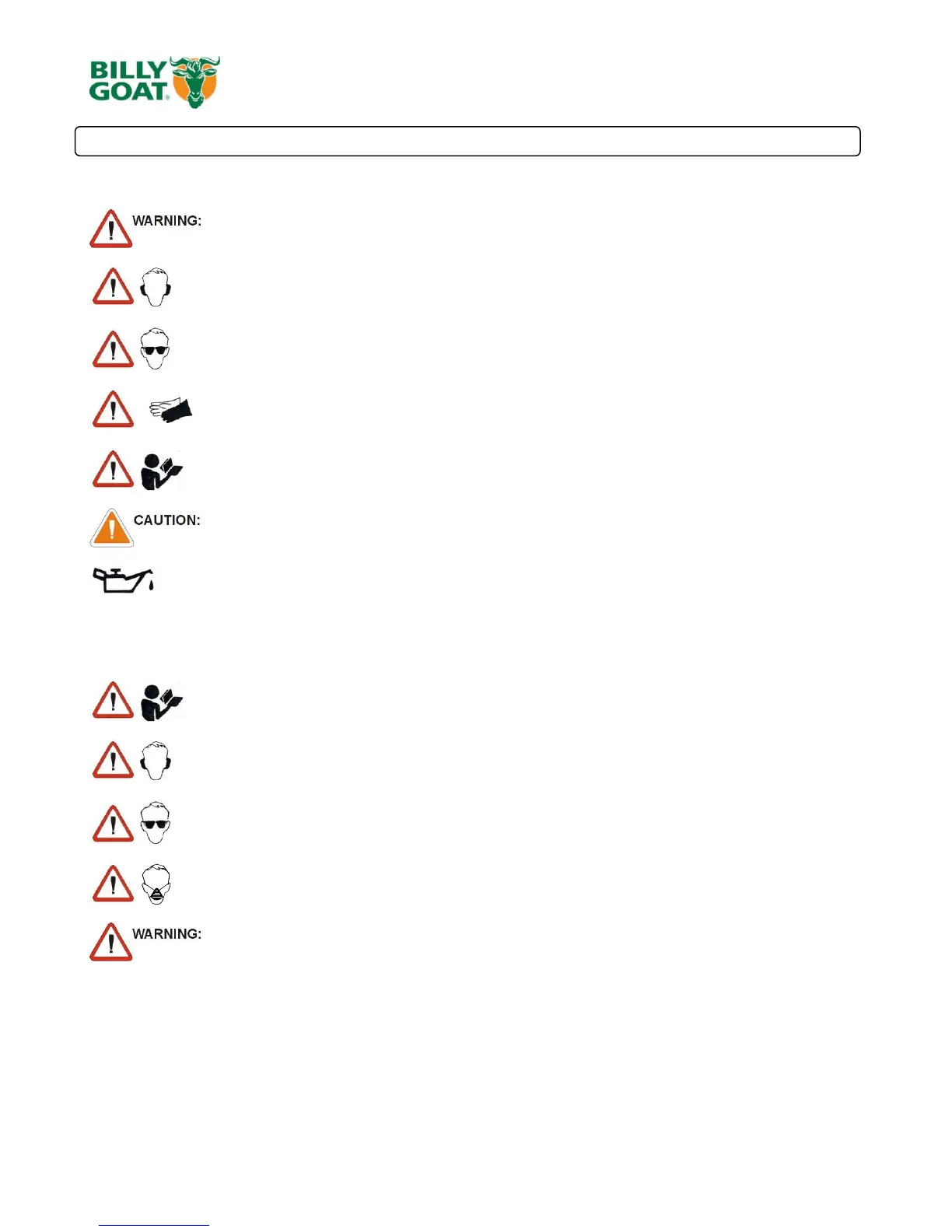 This symbol indicates important information that will prevent damage to your BILLY GOAT