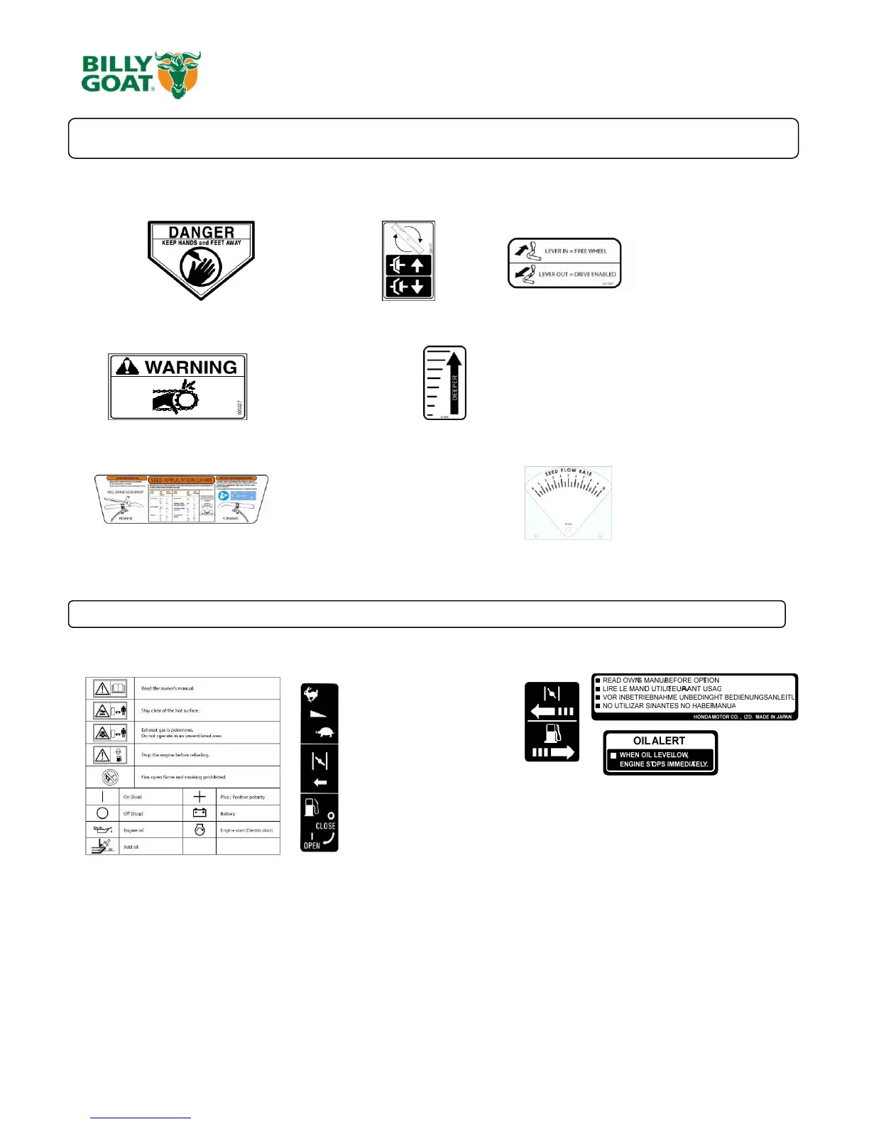The labels shown below were installed on your BILLY GOAT