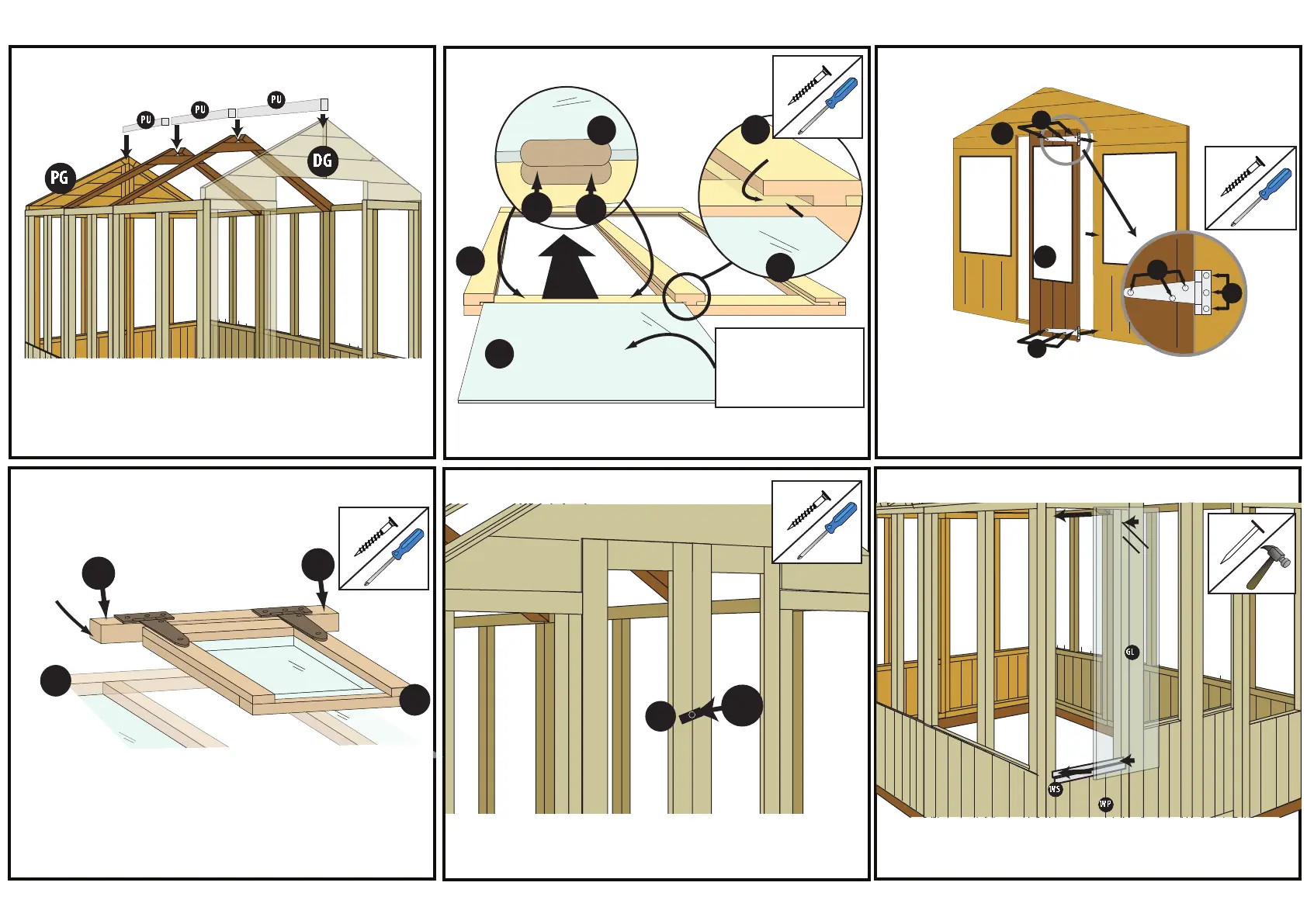glazing in place with two GLAZING CLIPS (GC) per pane with 12mm screws (S12)