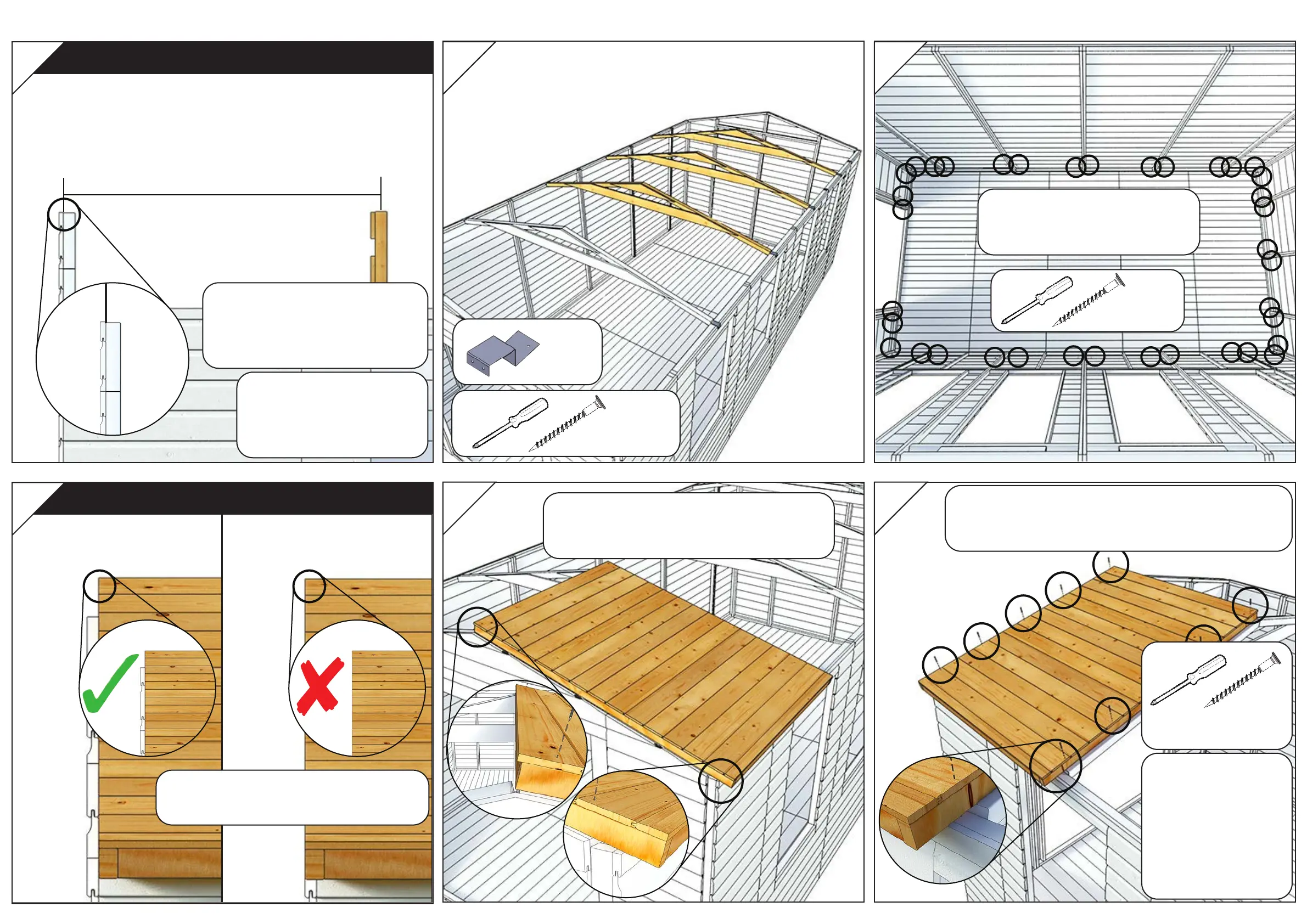Billyoh INS-0042 - Assembly - Roof Structure; Truss and Roof Panel Positioning; Securing Wall Panels to Floor