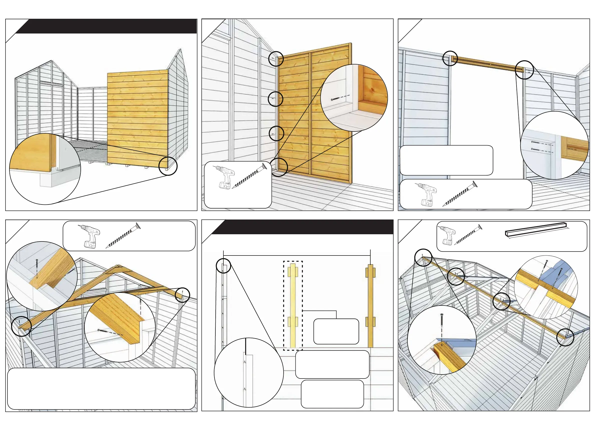Billyoh NS-0060 - Assembly - Window and Roof Sections; Windowless and Windowed Panel Fitting; Truss Positioning and Roof Sheet Prep