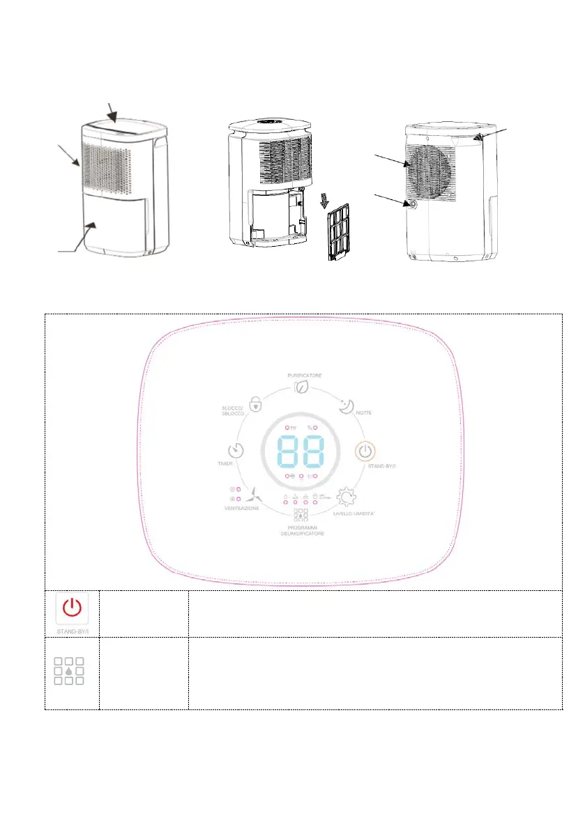 L’appareil est pourvu des éléments de contrôle, réglage et parties suivants: panneau de