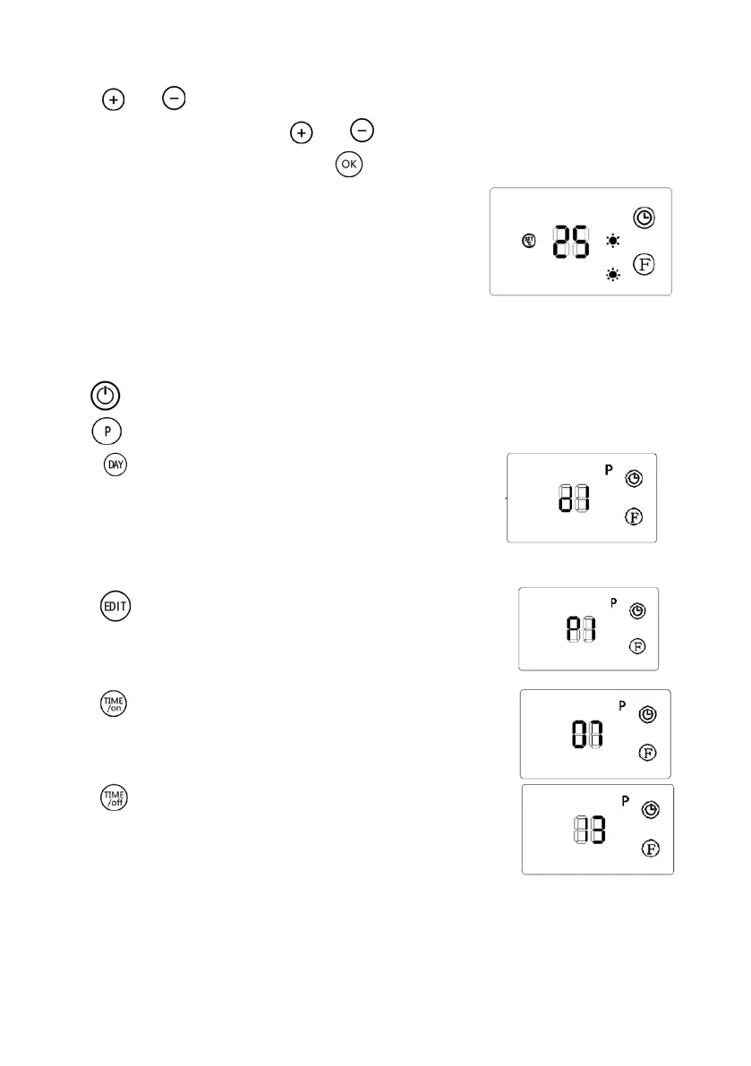 • Taste: die Programmierung startet, LED leuchtet neben den “P”