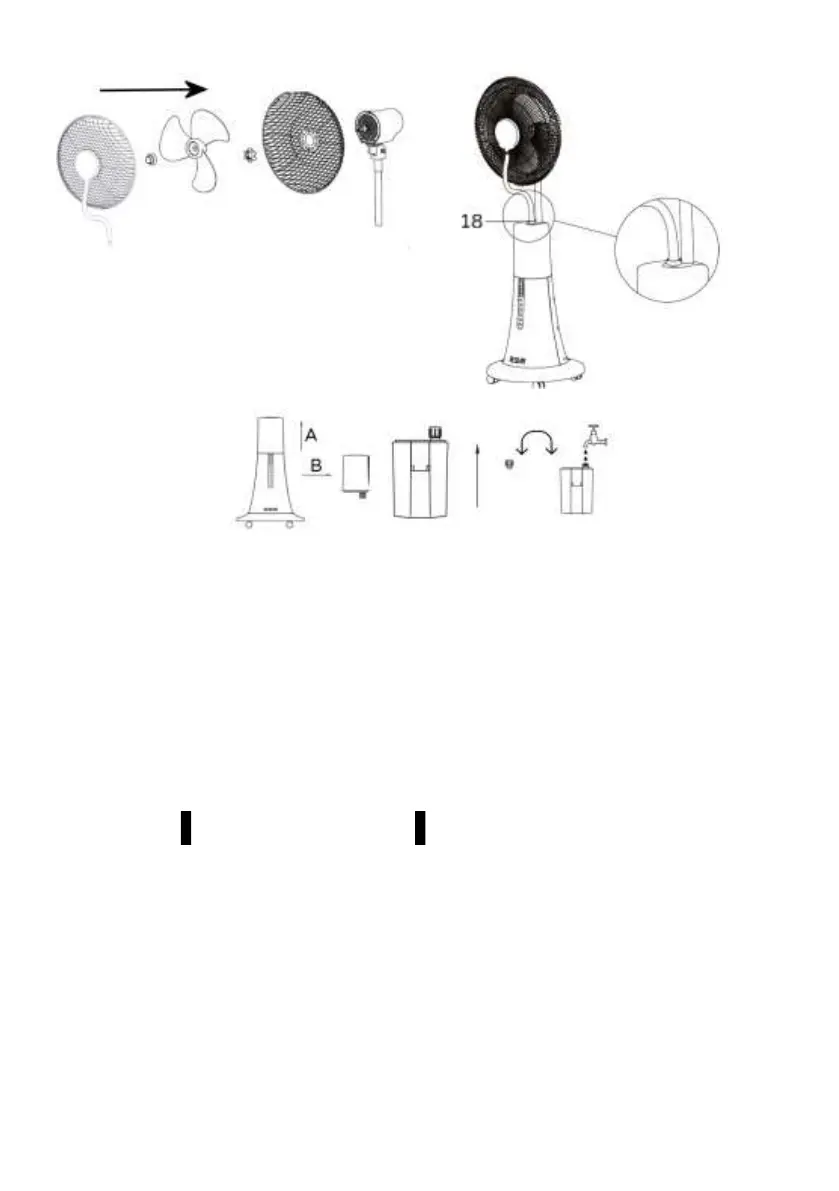 2. Fissare la “testa del ventilatore” (10) e l’asta regolabile (8): verificare che il