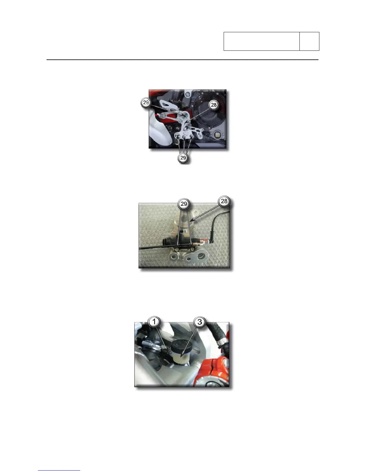 To remove the rear master cylinder (8) is necessary to remove the right engine plate (28).