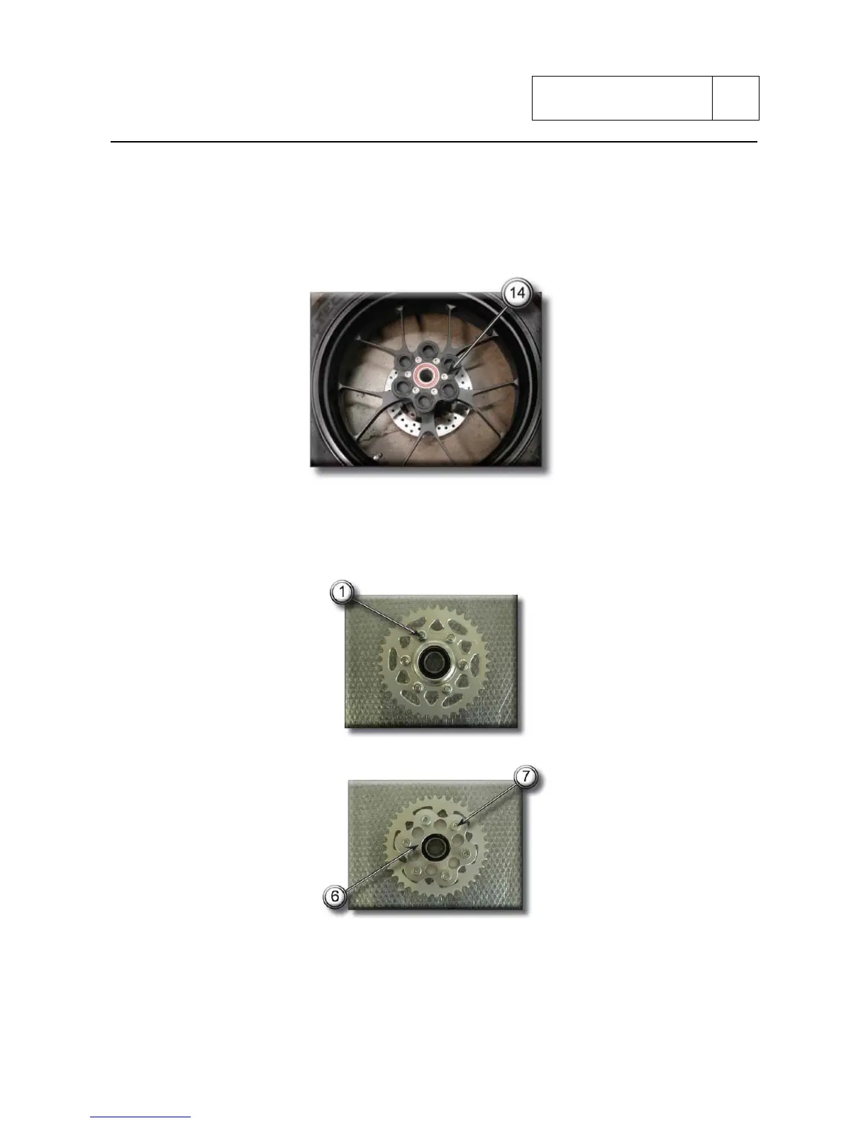 Remove the sprocket holder flange (6) from the rear wheel (14).