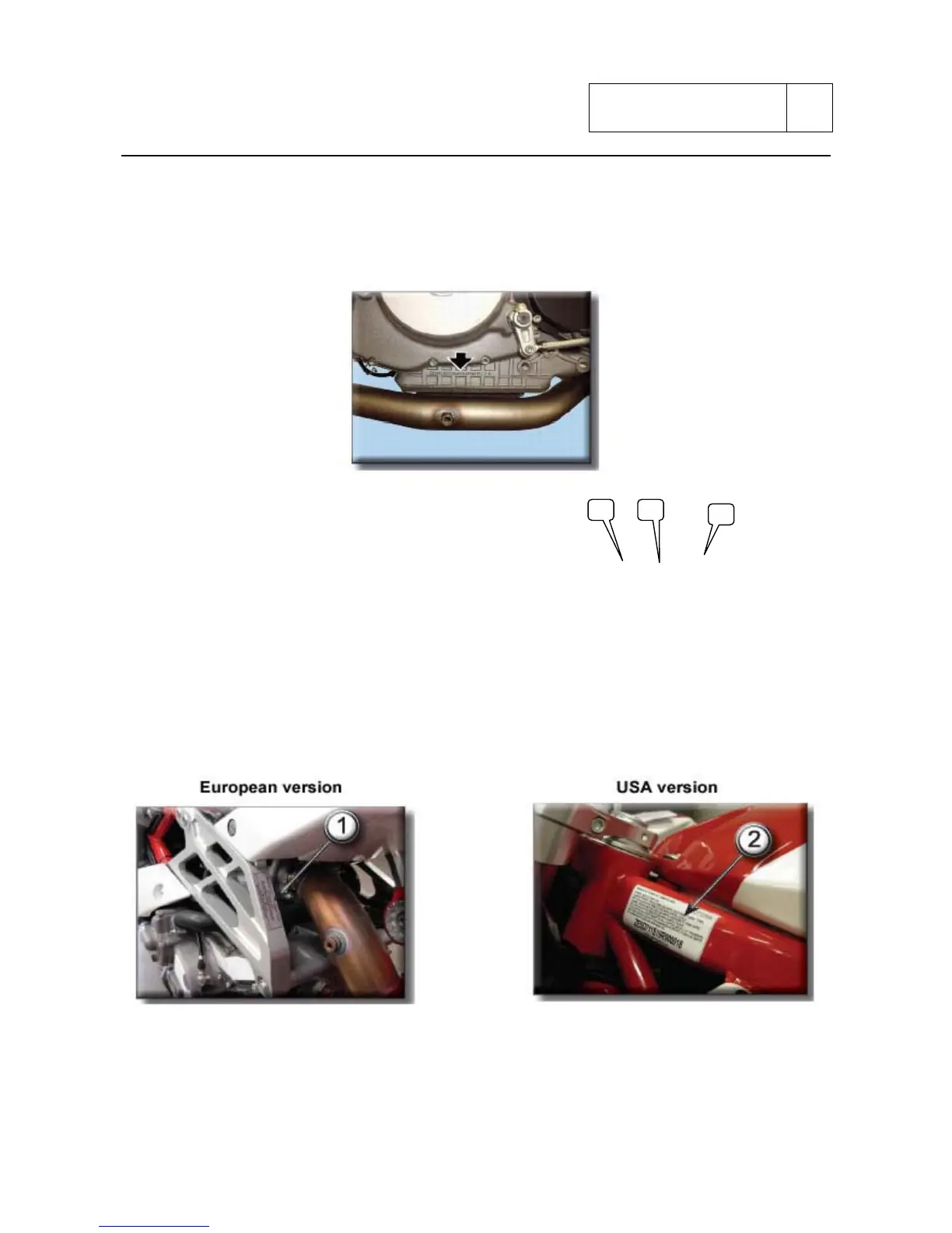 In the USA version (2) is placed on the left side of the frame near the steering head tube (2).
