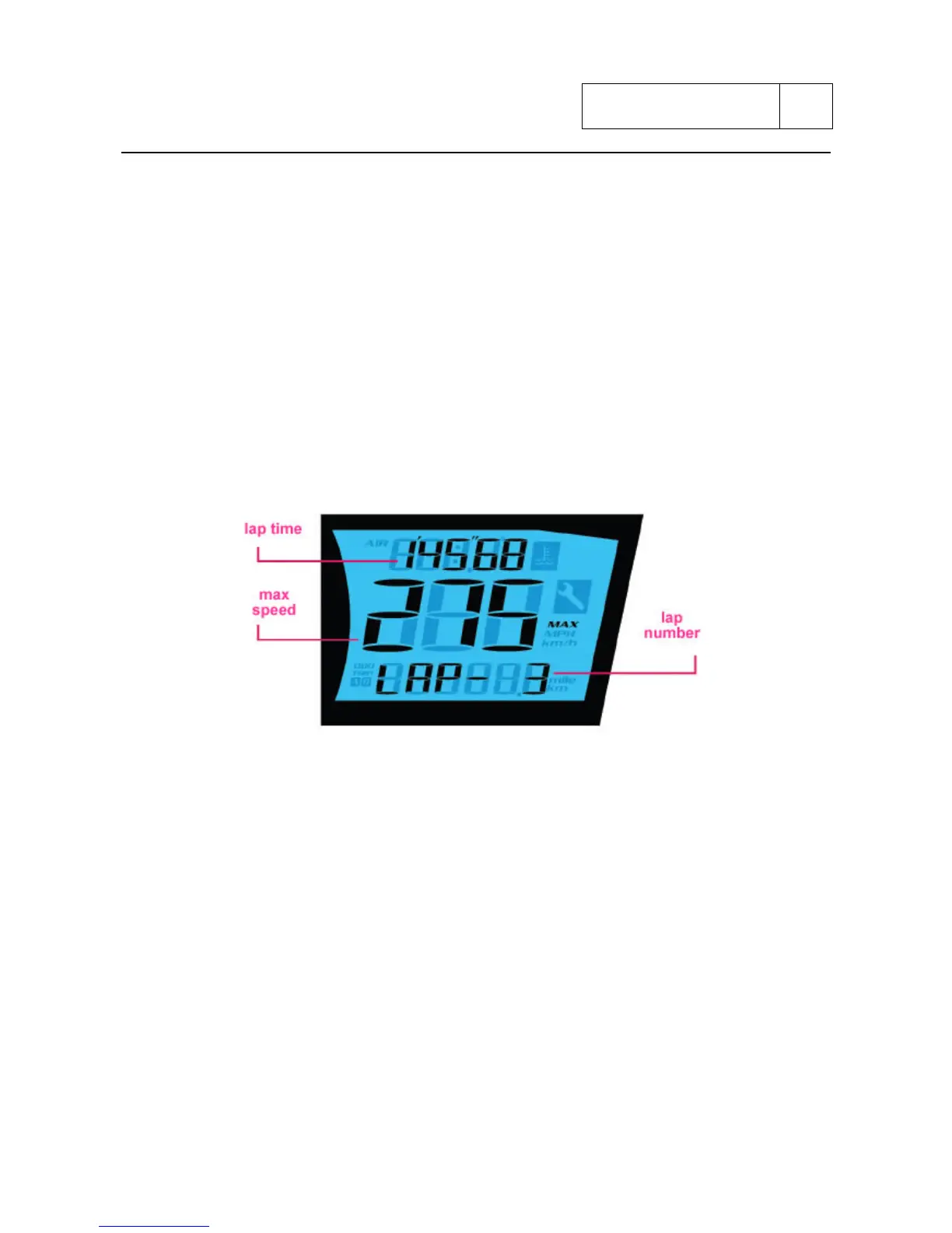recorded up to 20 laps). To display the recorded data of each lap press the starter button.