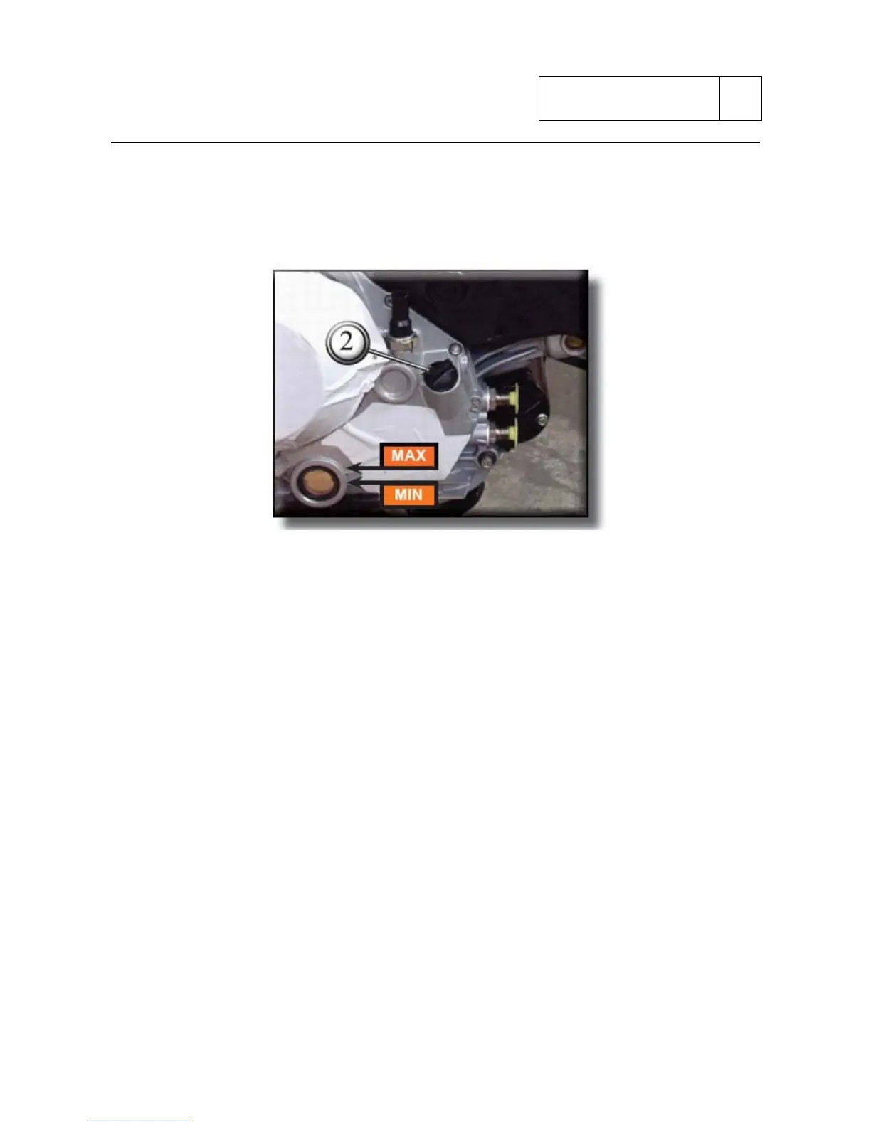 Remove the load cap (2) and fill with the prescribed oil to up to the mark which identify the MAX