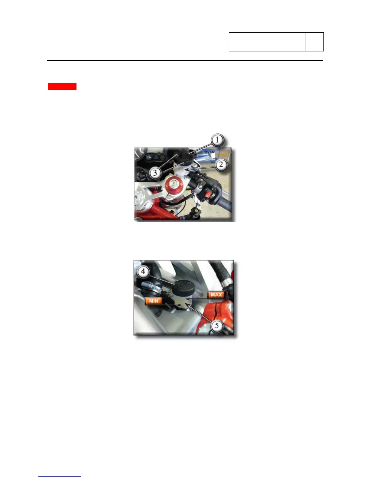 Unscrew the cover (4) of the rear brake fluid reservoir (5).