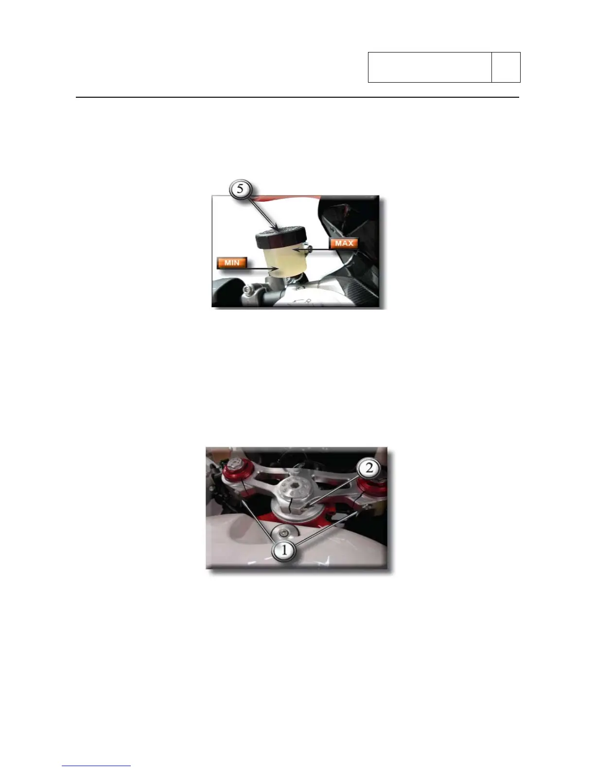 Bring the fluid at about 3 mm above the MIN reference level of the reservoir.