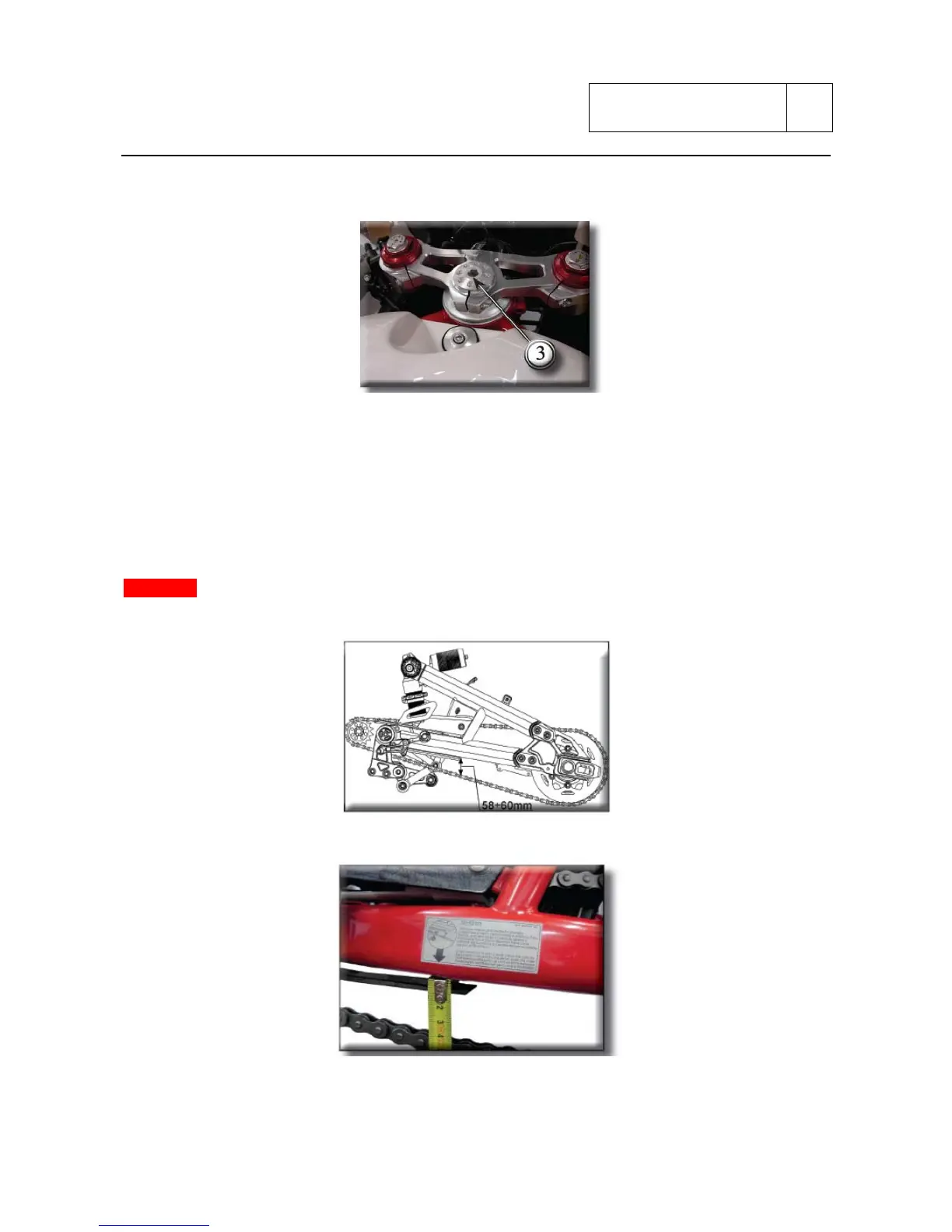 Move the motorcycle to find the position where the upper part of the chain is more tight. Place the