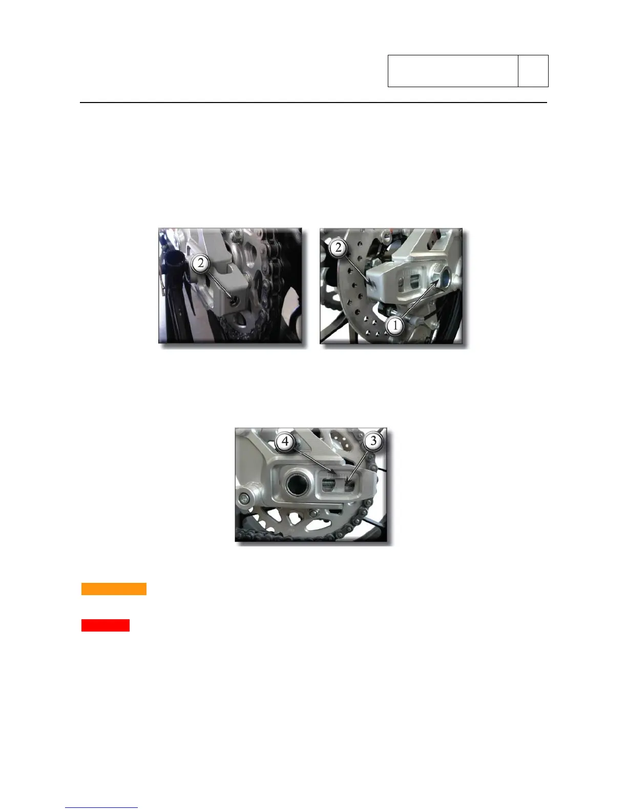 Tighten the rear wheel axle (1) to the tightening torque of 100Nm.