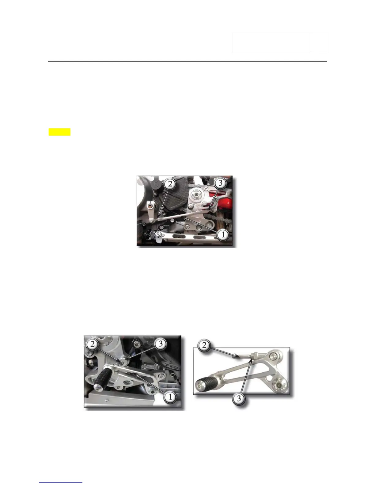 and rear brake pedal respect to the footpegs.