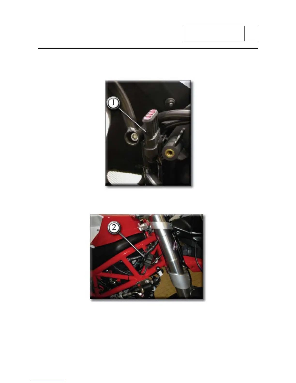 Bimota DB5 : the diagnosis connector (1) is placed on the left side of the upper fairing, near to
