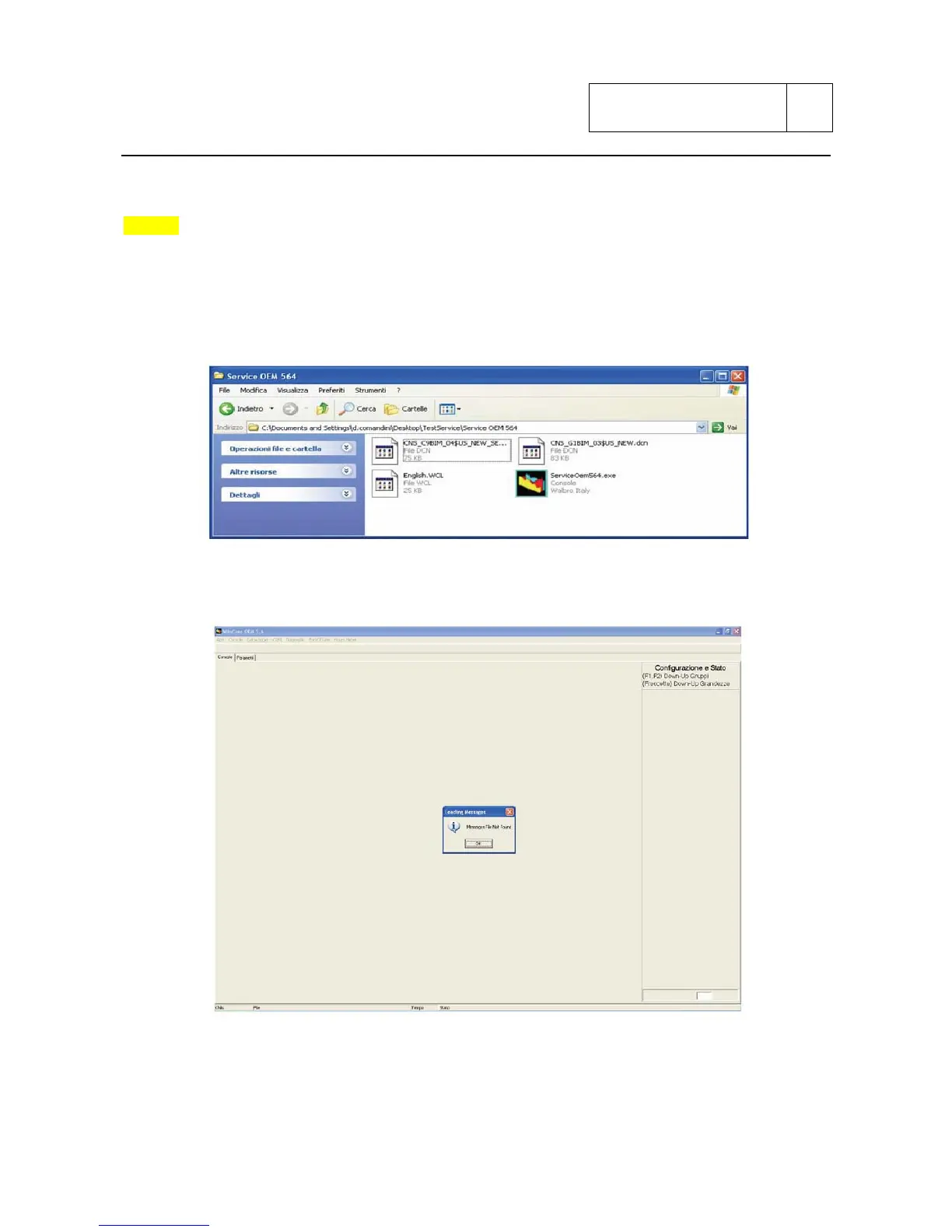 Launch the diagnostic program named “Service OEM 564”.