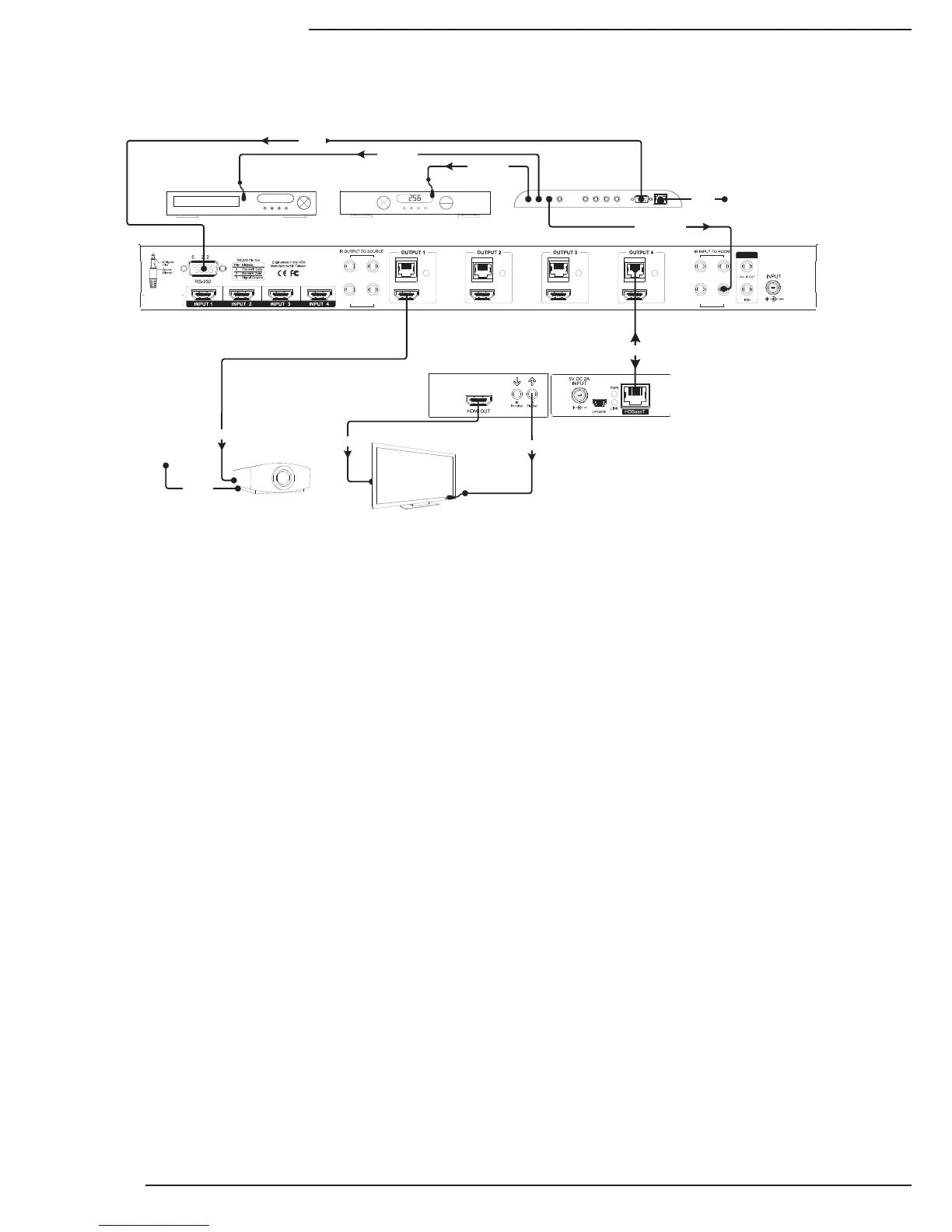 thesamenumber.Inthediagramthemonocableusedtosendcommandstotheoutput4zoneispluggedintoIR