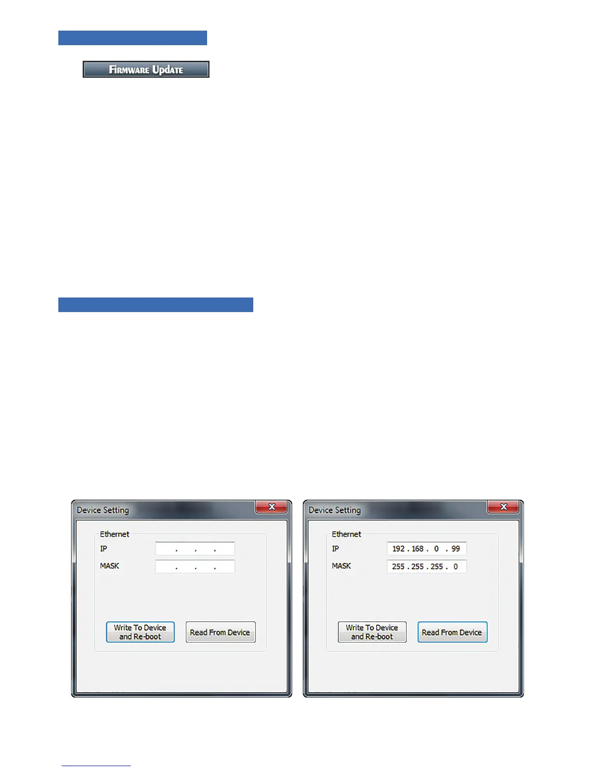 current IP address and Subnet Mask are. press the READ FROM DEVICE button. If you have not reset, the IP