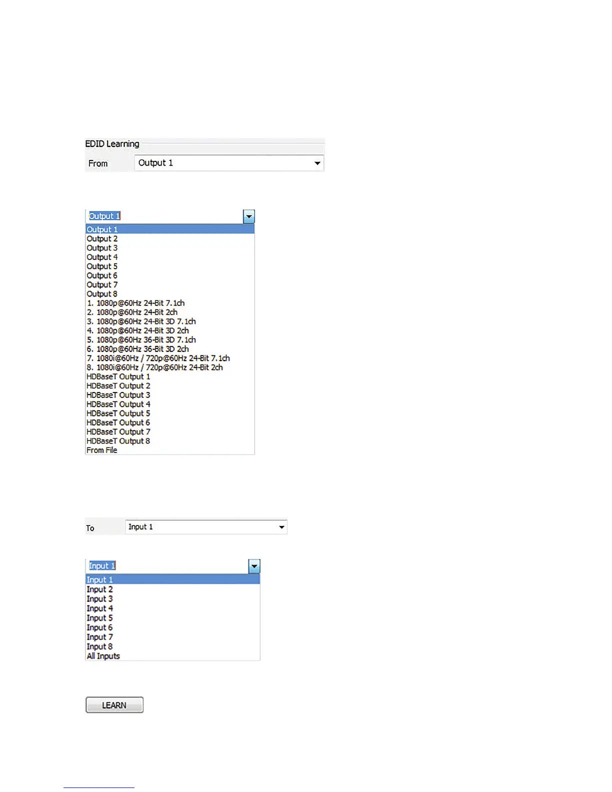 1. Select an Input to learn to in the “EDID Learning TO” dropdown list: