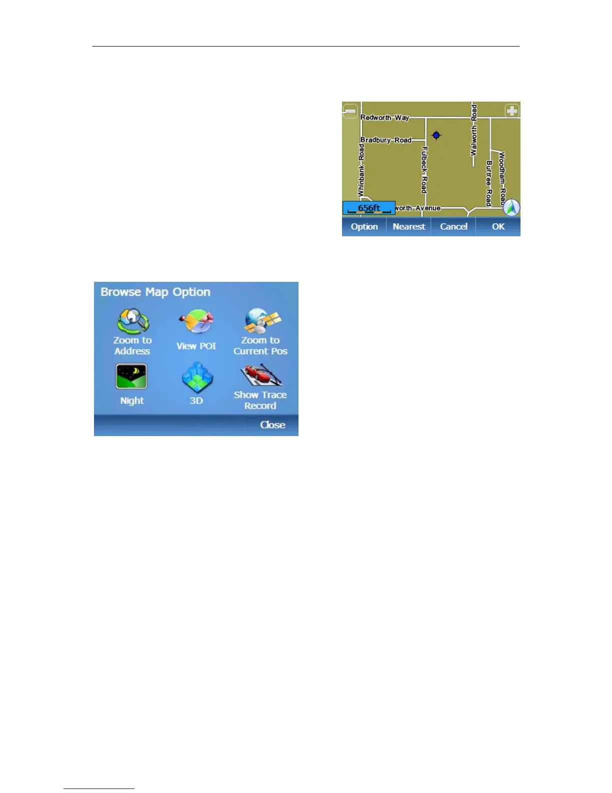 ¾ Tap Option the screen will change to show the Browse Map Options menu.