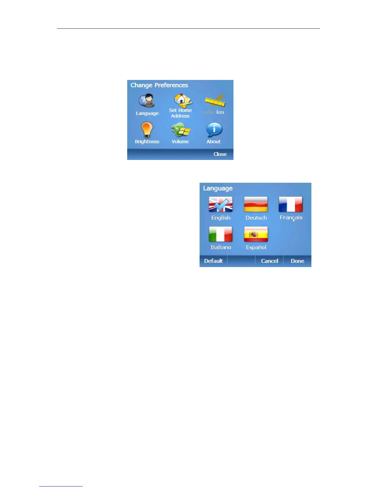 From the main menu tap to access the Change Preferences screen. There are 6