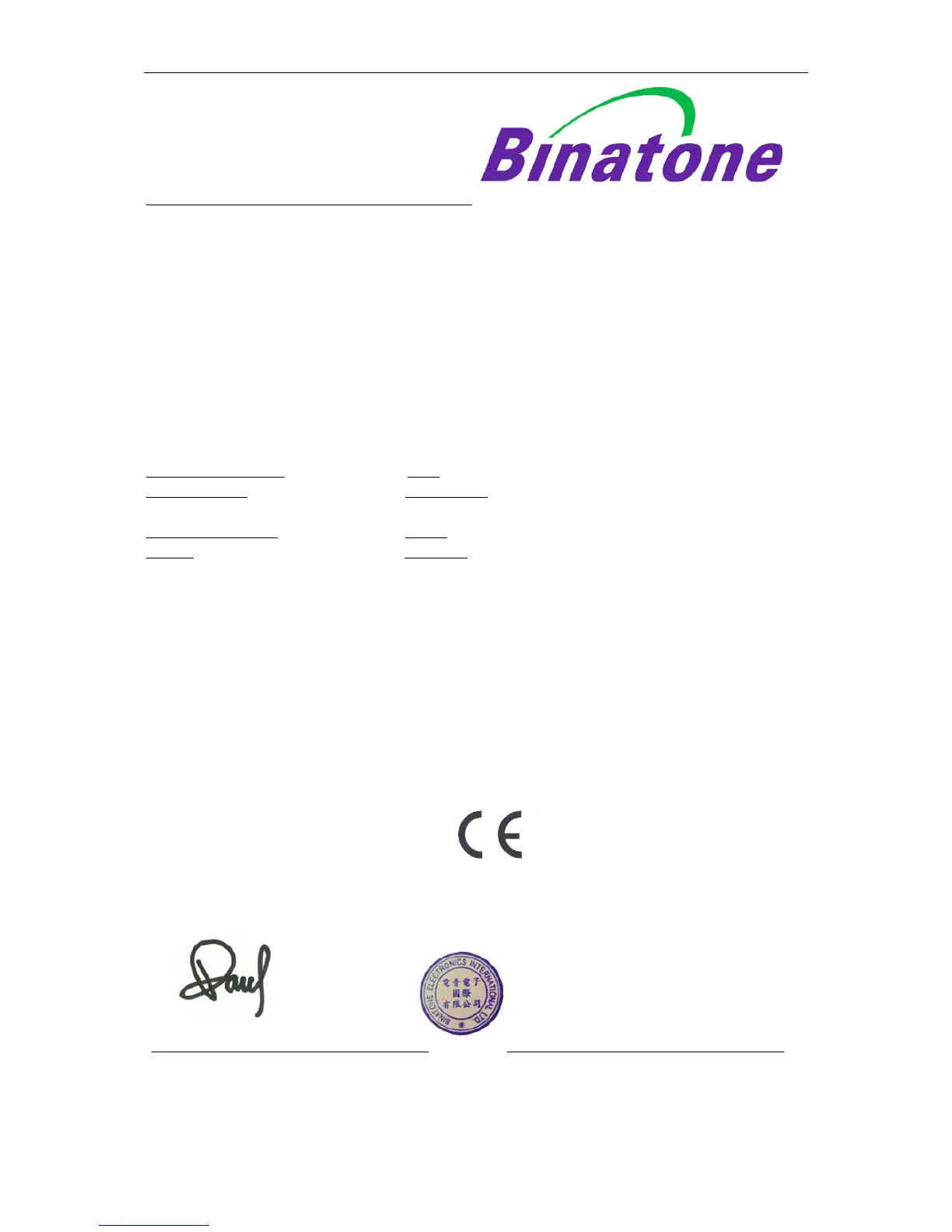 41 Binatone Help Line: 0845 345 9677 (for UK only. Local Call rate)