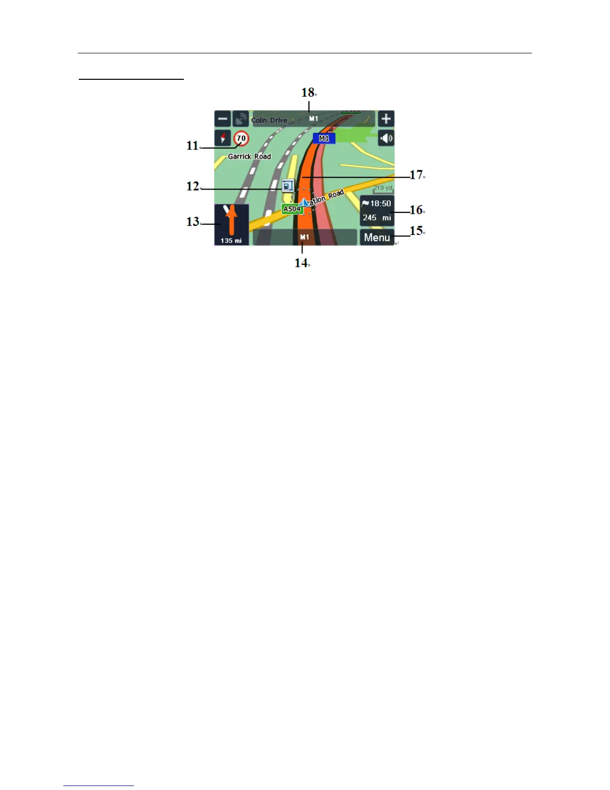 18 Next road – Shows the name of the road you will be using next.
