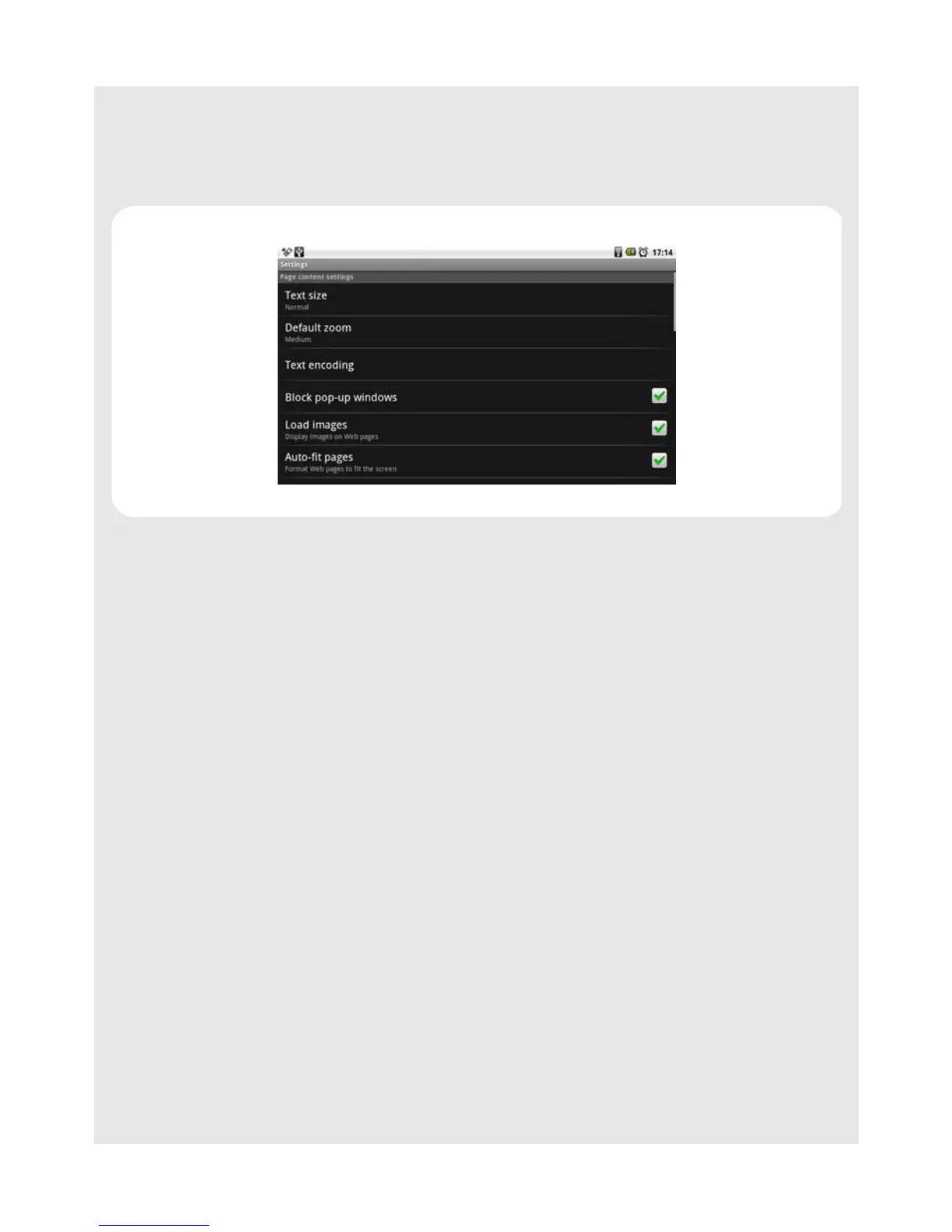 Page content settings Text size