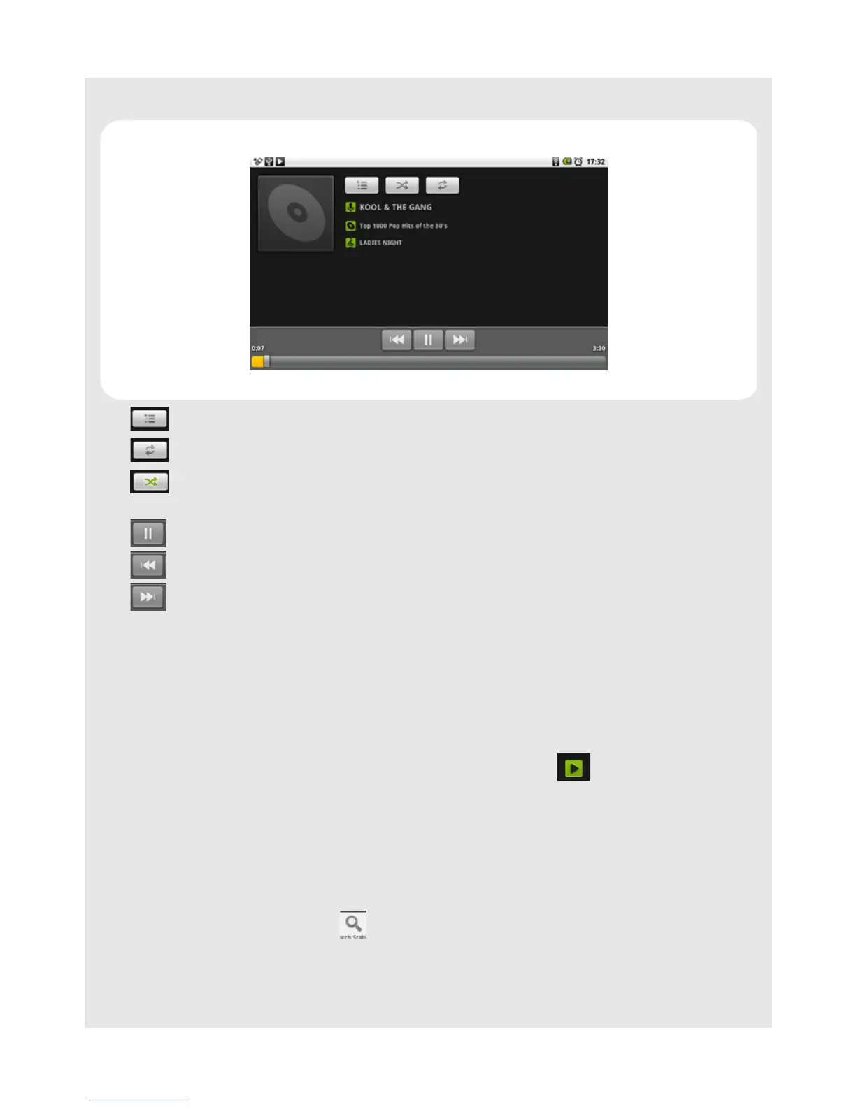 Tap to turn shuffle on and off. (Shuffle is off when button is gray.)