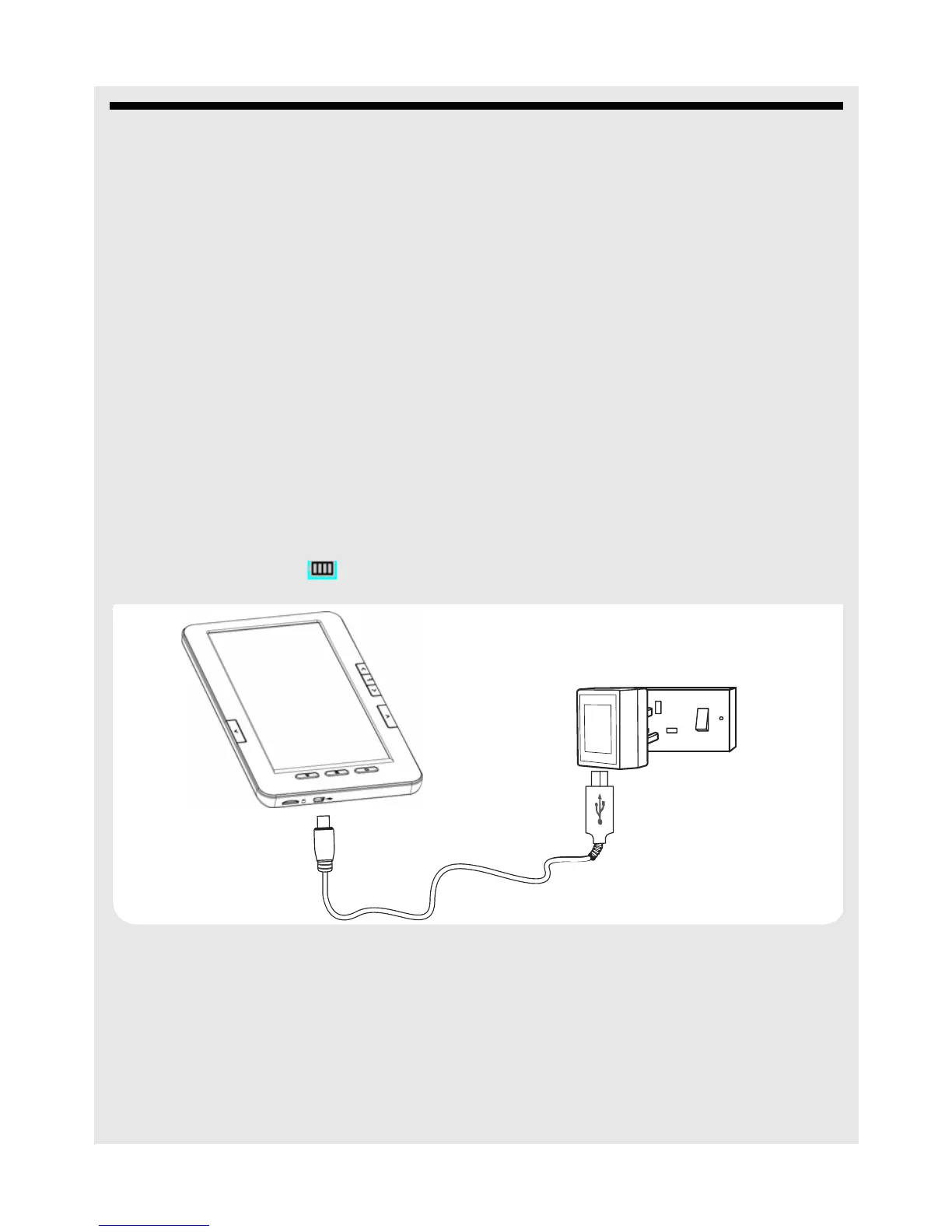 The battery starts charging automatically when the eBook Reader is connected to the
