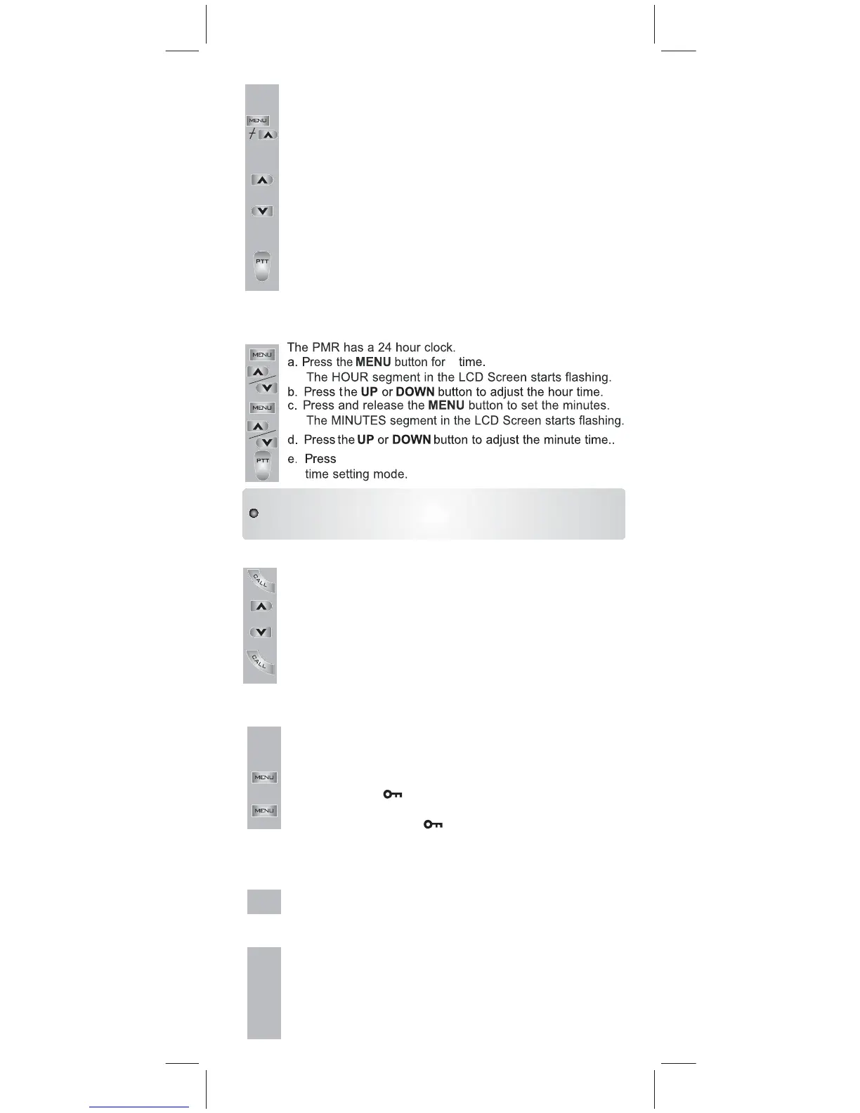 PTT button to confirm the time setting and exit from the