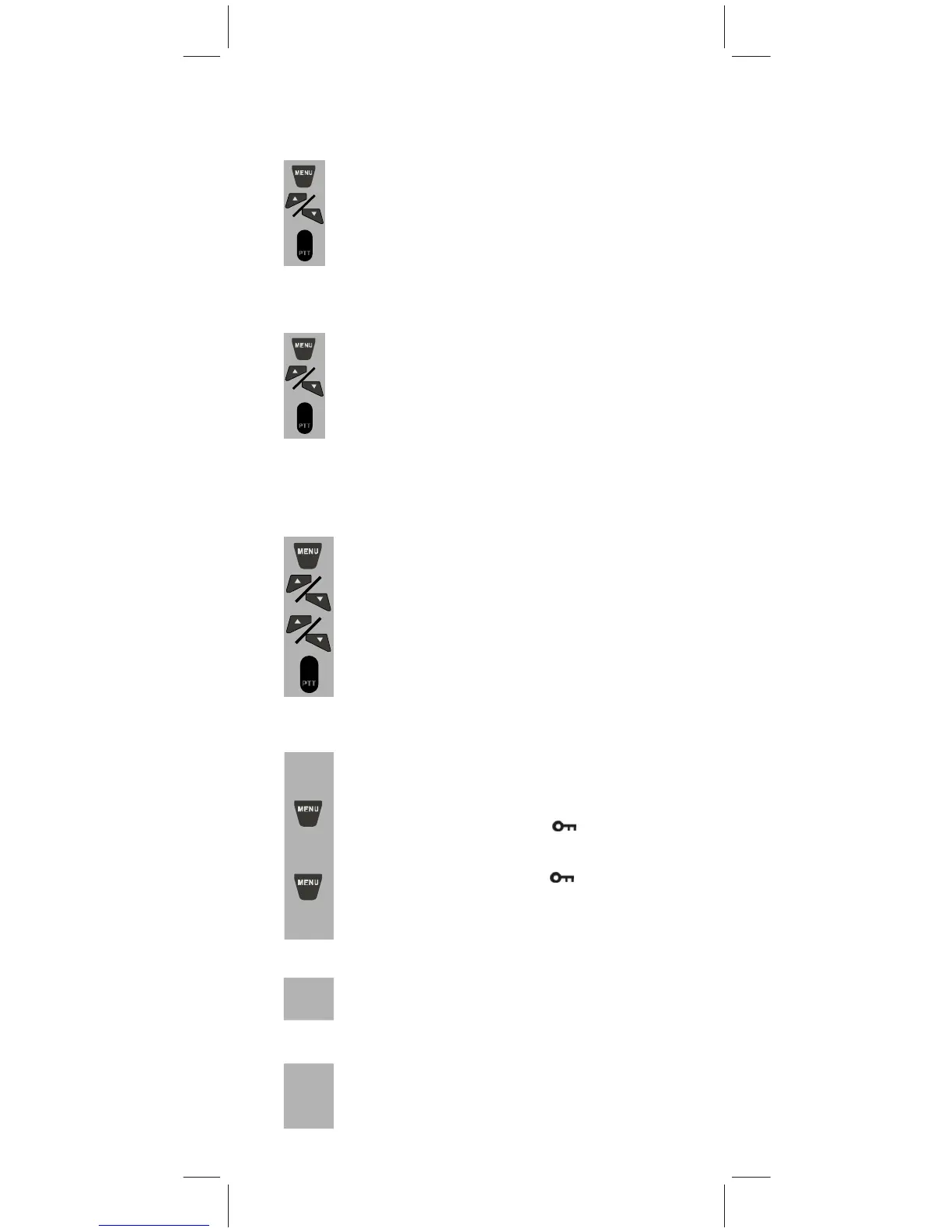 MENU button until key lock “ ”icon appears on