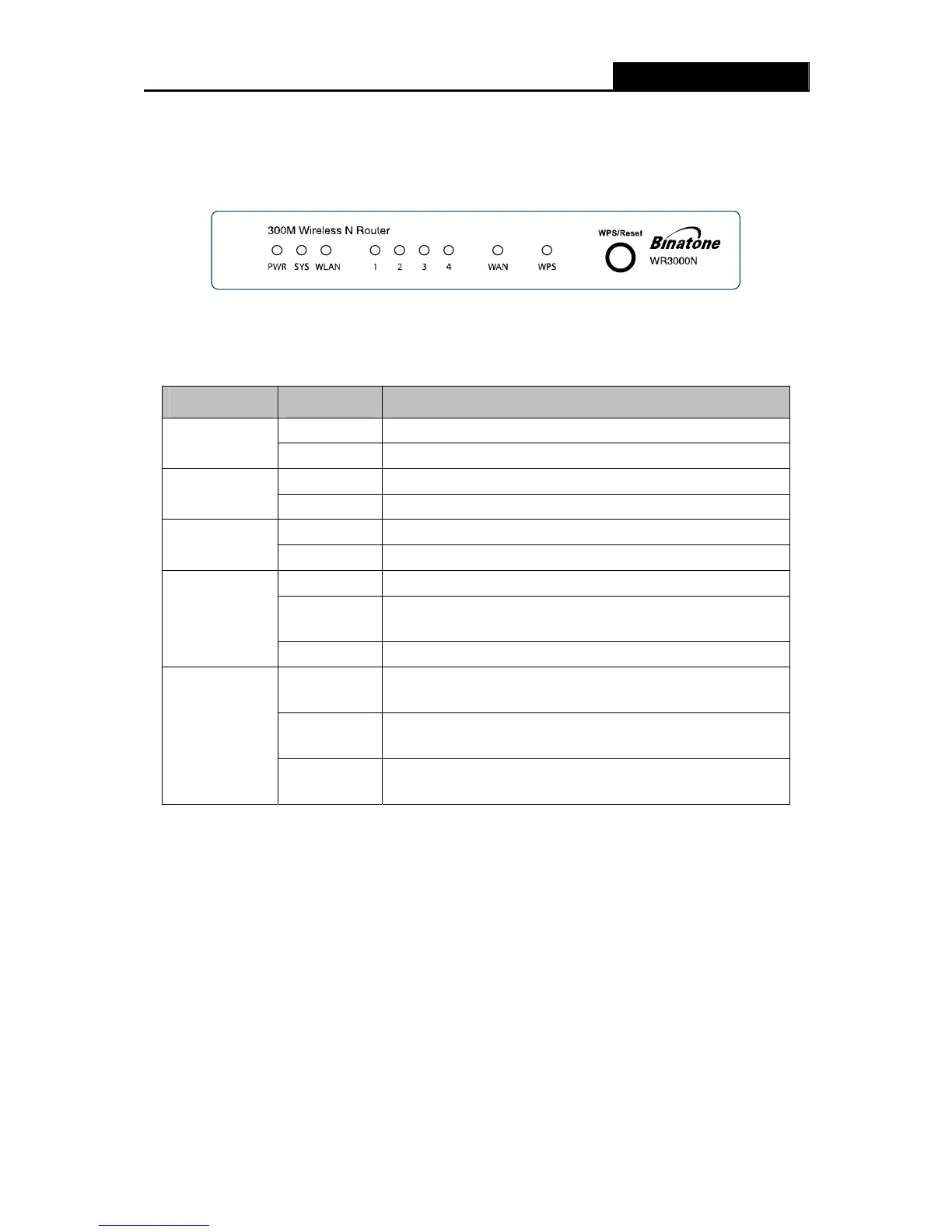 The Router’s LEDs and the WPS/Reset button are located on the front panel (View from left to