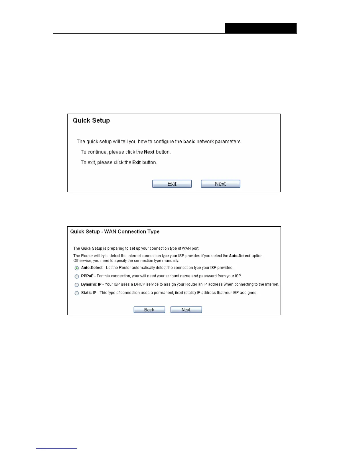 4. If you select Auto-Detect, the Router will automatically detect the connection type your ISP