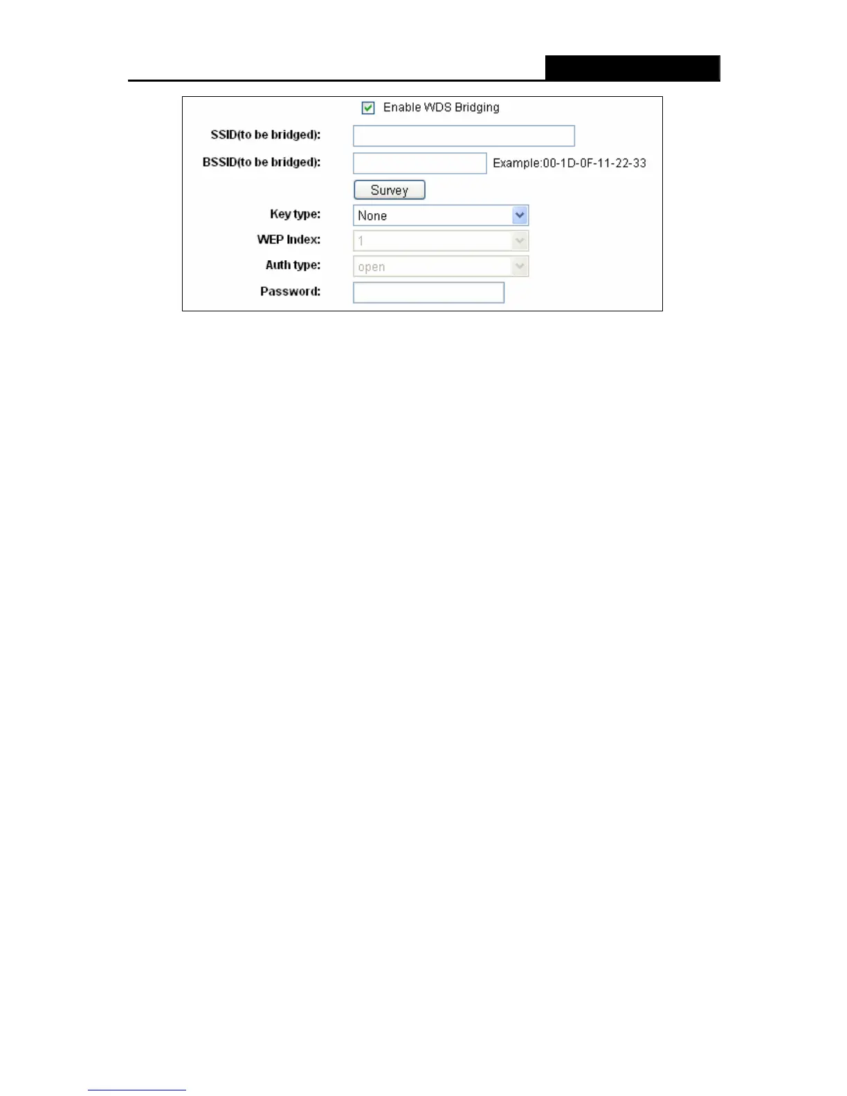 ¾ BSSID(to be bridged) - The BSSID of the AP your Router is going to connect to as a