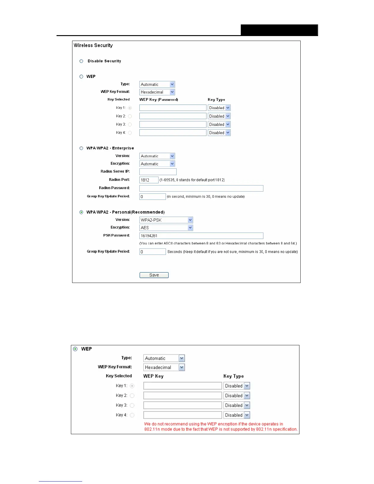 ¾ Disable Security - If you do not want to use wireless security, check this radio button. But it’s