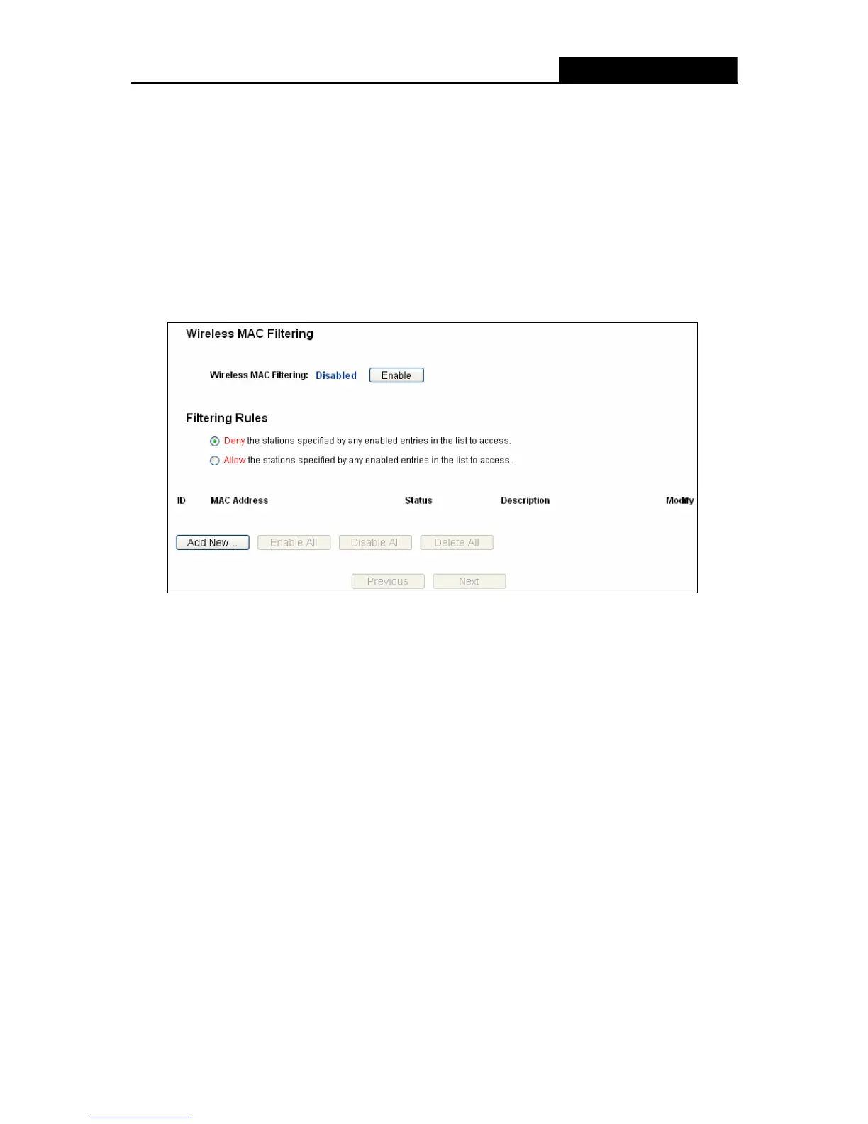 the Wireless MAC Filtering function, shown in Figure 4-21.