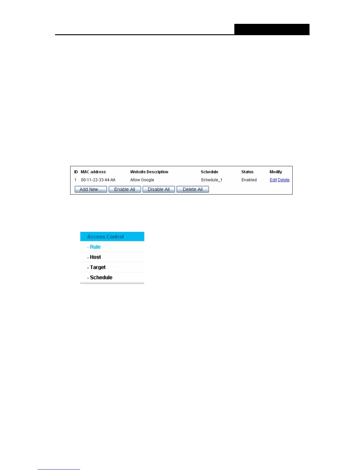 There are four submenus under the Access Control menu as shown in Figure 4-45: Rule, Host,