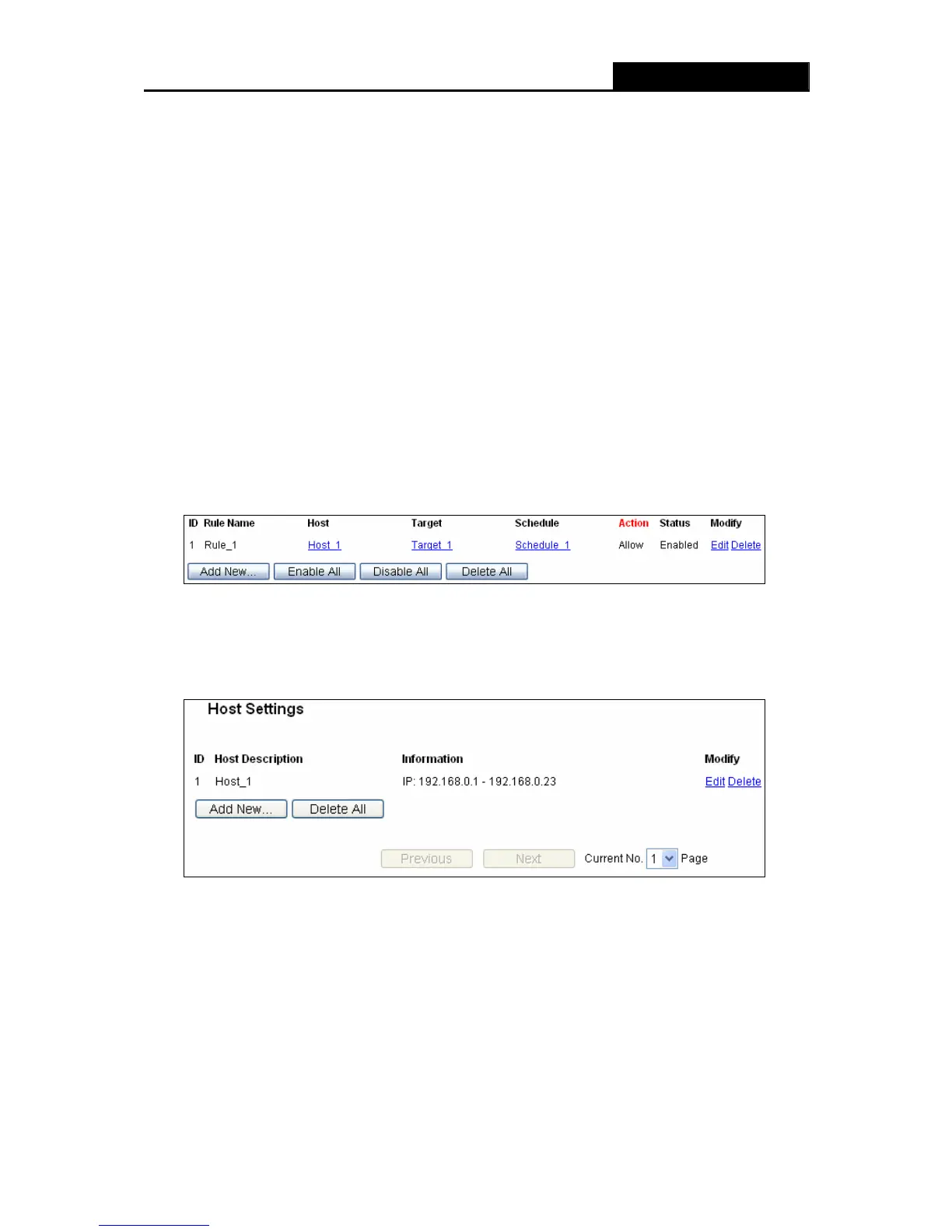 Choose menu “Access Control → Host”, you can view and set a Host list in the screen as