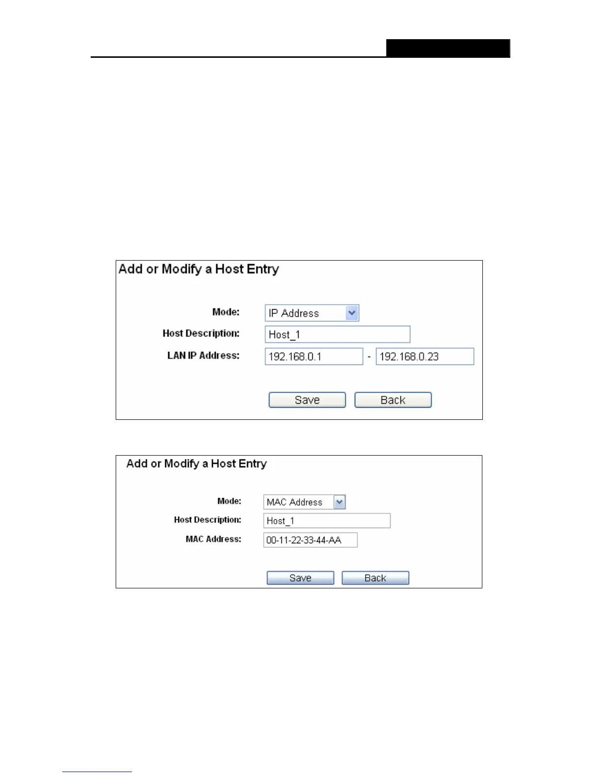 Figure 4-49 Add or Modify a Host Entry