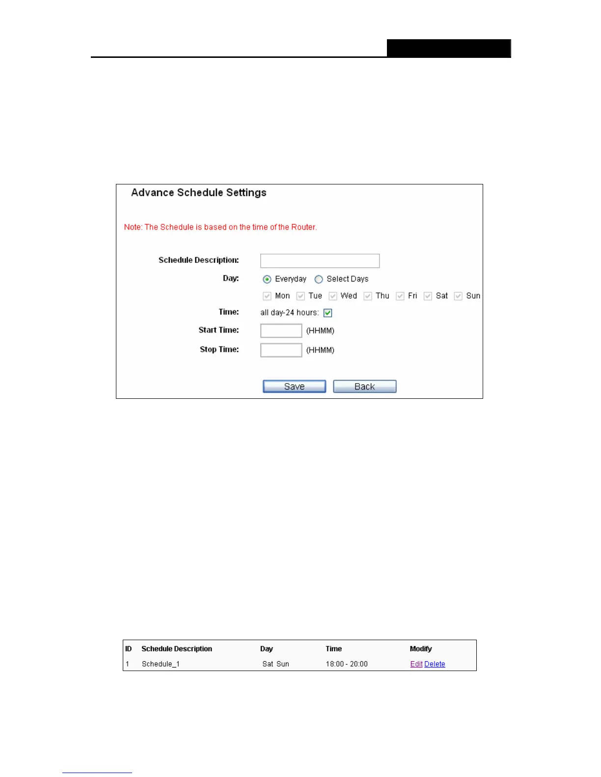 4. In Time field, you can select all day-24 hours or you may enter the Start Time and Stop Time