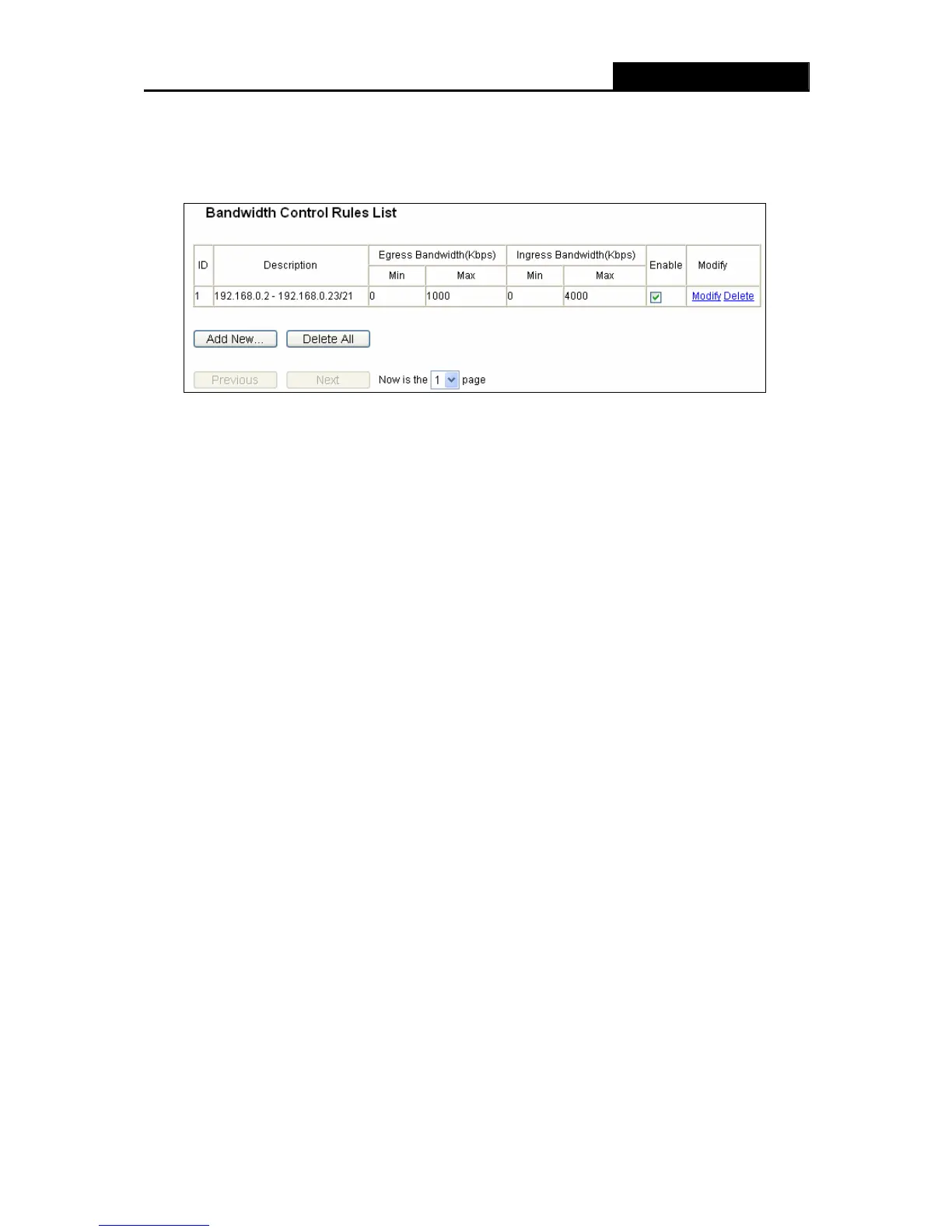 Choose menu “Bandwidth Control → Rules List”, you can view and configure the Bandwidth