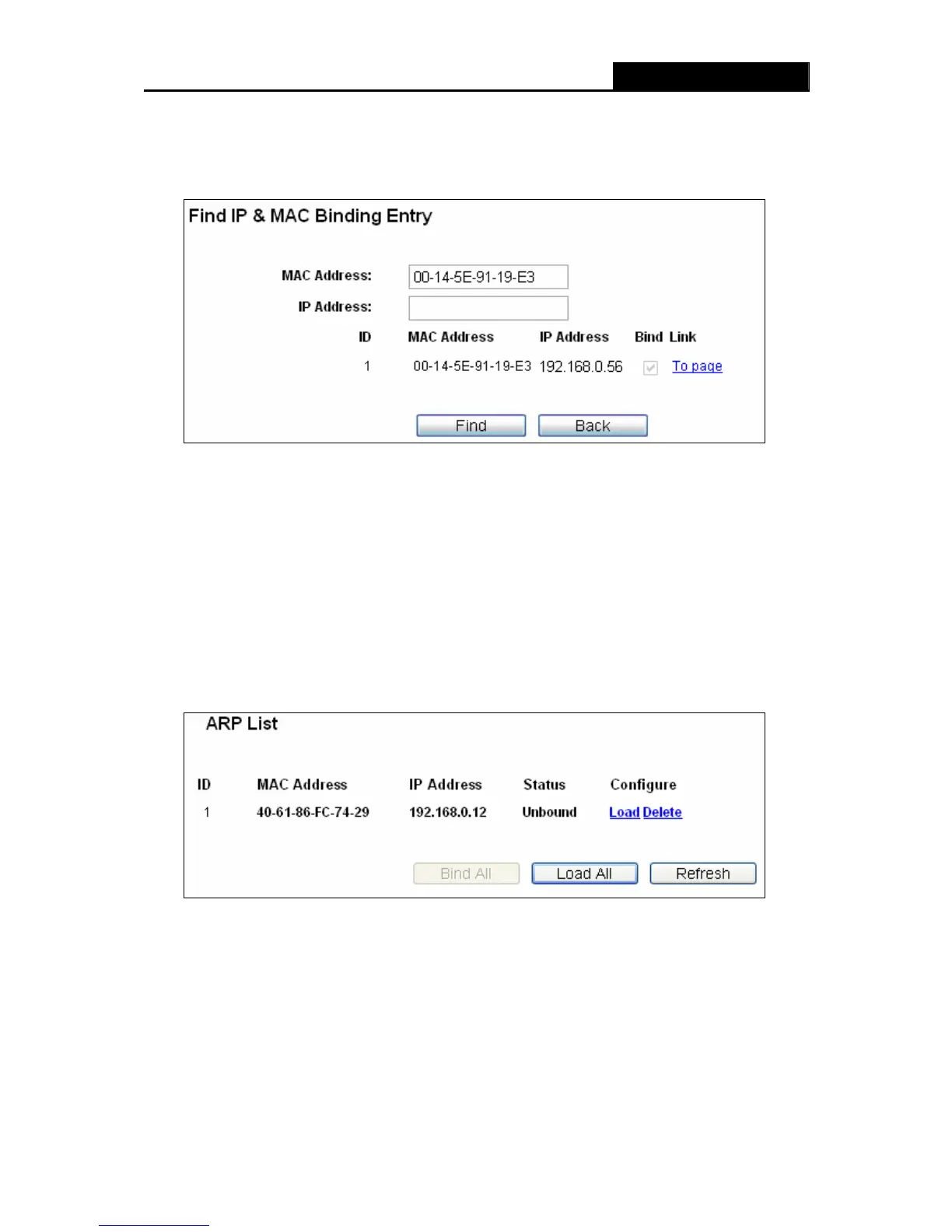 the ARP list also. This page displays the ARP List; it shows all the existing IP & MAC Binding