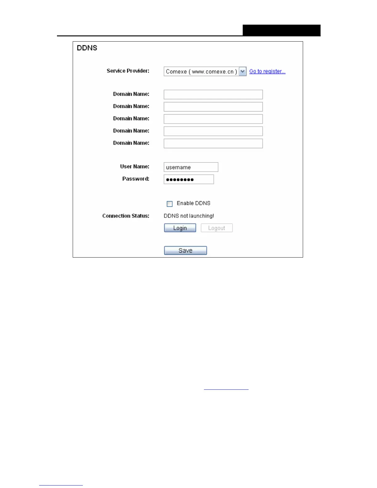 1. Type the Domain Name received from your dynamic DNS service provider.