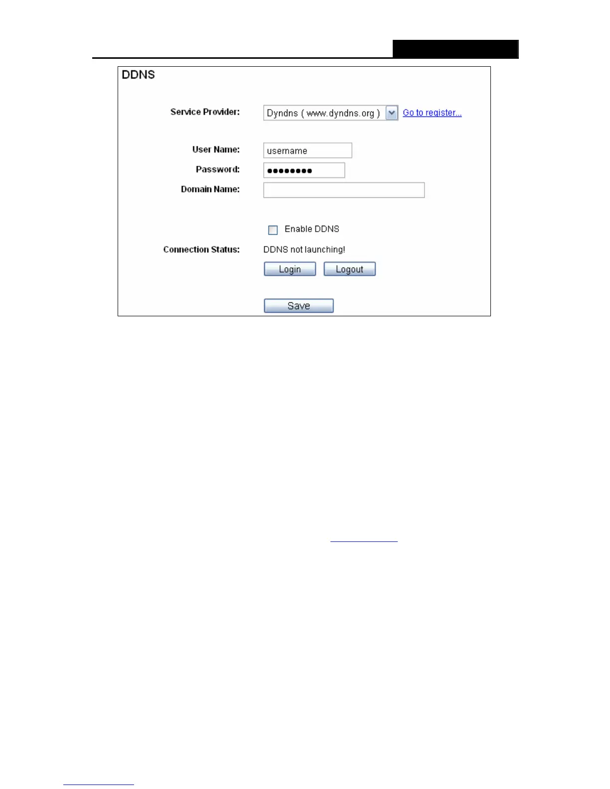 7. Type the Domain Name you received from dynamic DNS service provider here.