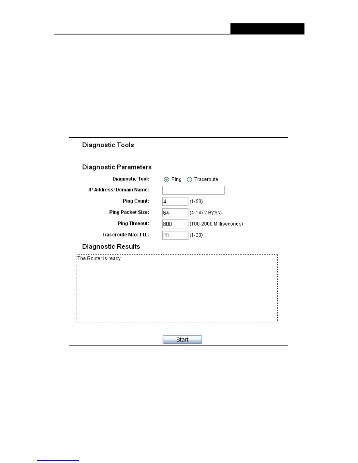 Choose menu “System Tools → Diagnostic”, you can transact Ping or Traceroute function to