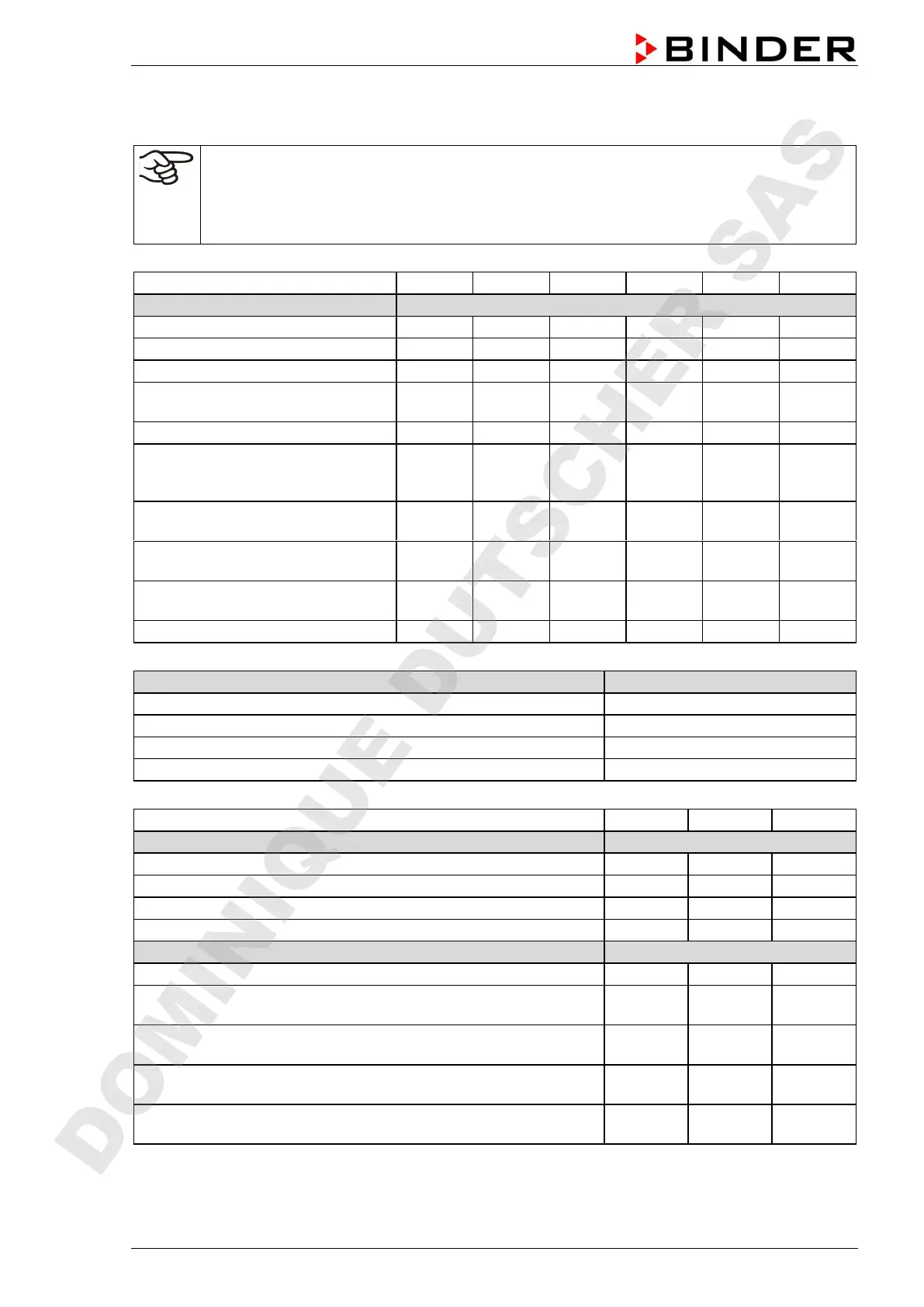 For information on components not listed here, please contact BINDER Service.
