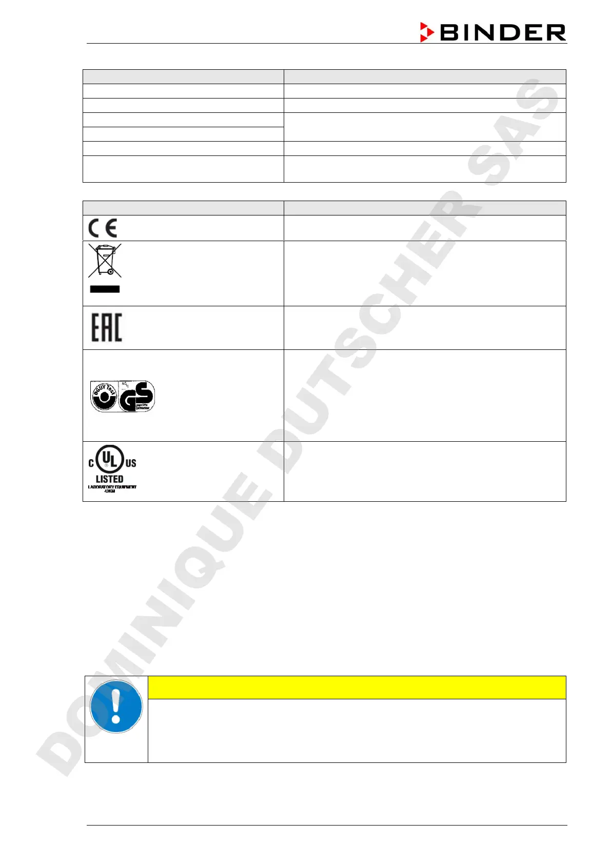 To operate the chamber, use only original BINDER accessories or accessories from third-party suppliers
