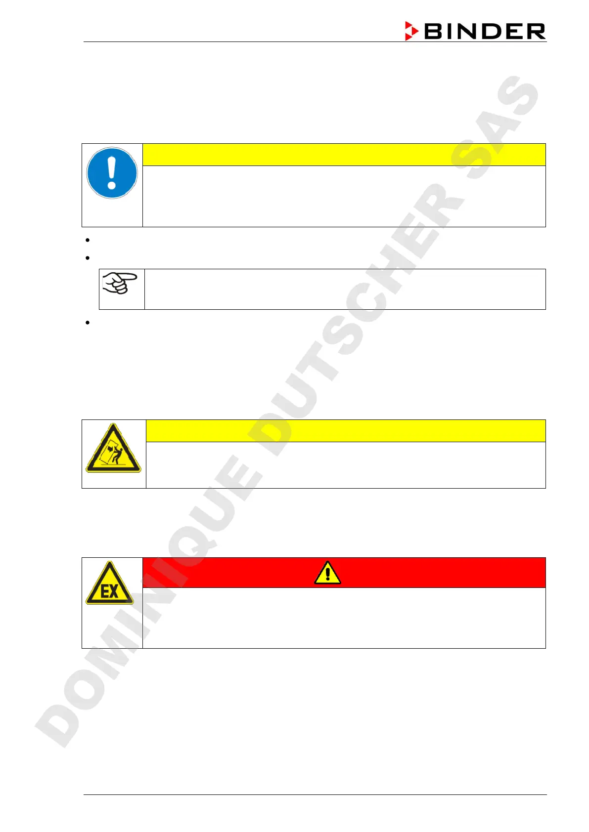 ∅ Do NOT operate the chamber in potentially explosive areas.