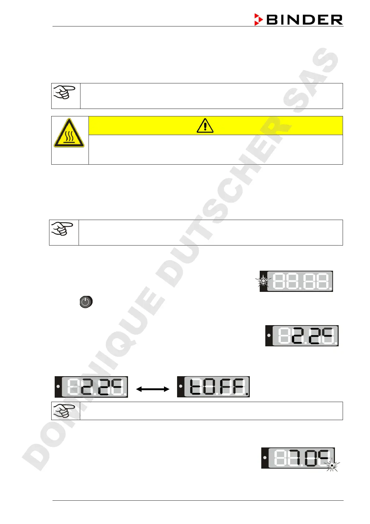 (chap. 6.3), the chamber is inactive (no heating). The display alternately shows the actual temperature